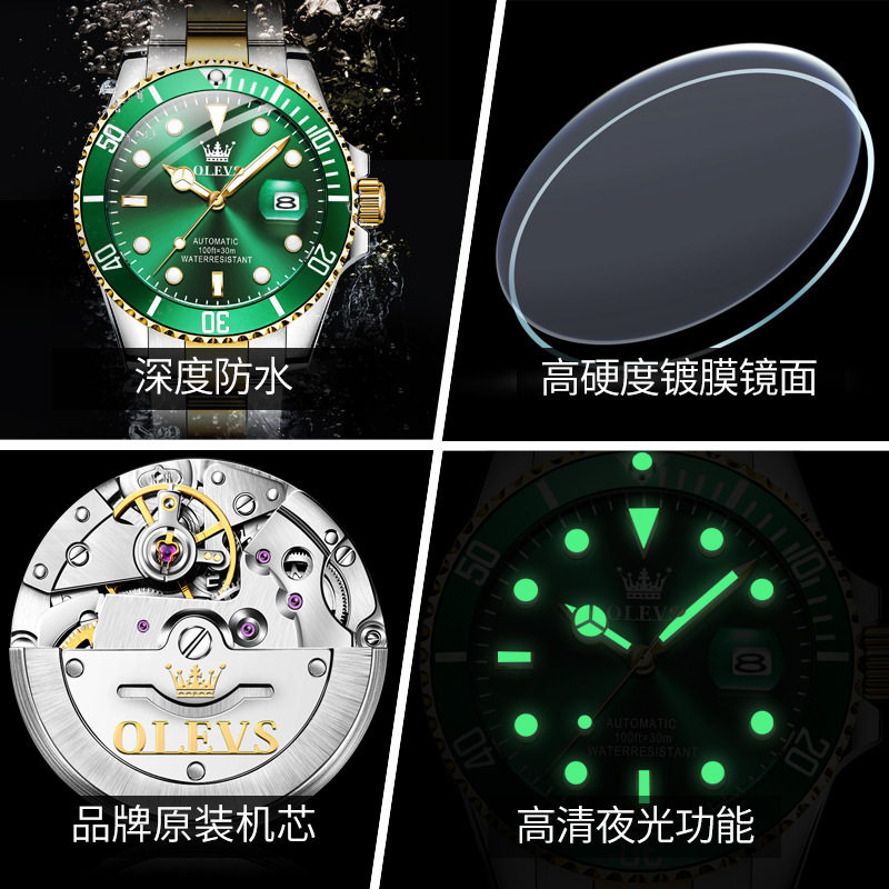 Механические водонепроницаемые мужские часы, люксовый календарь, Швейцария, полностью автоматический