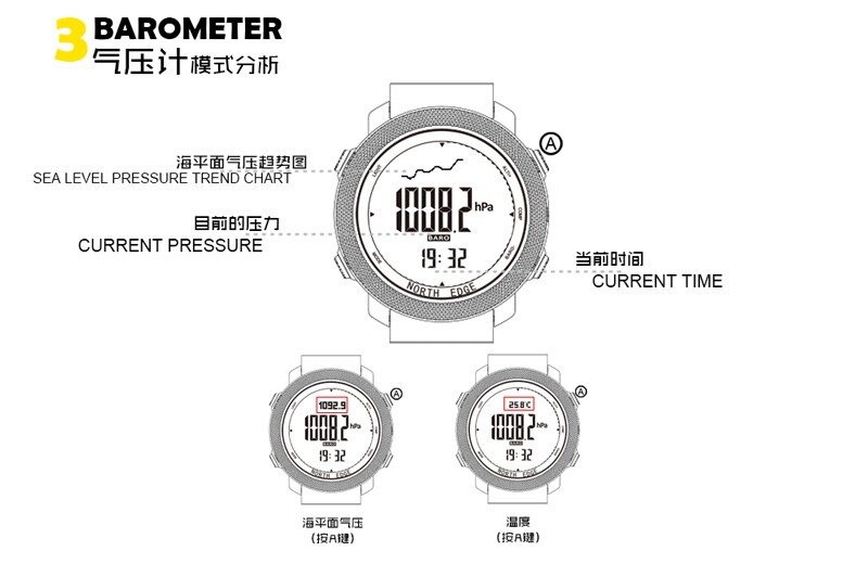 Военные правила North Edge Легкие спортивные часы на открытом воздухе мужская высота высота