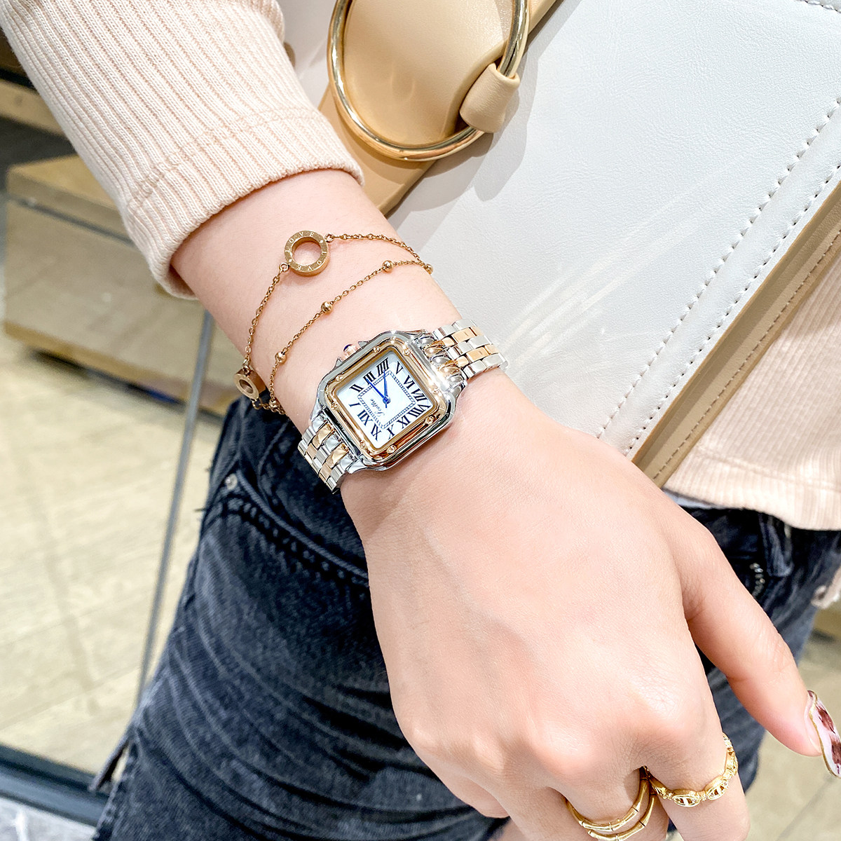 Квадратные часы, трендовые женские часы, 2021 года, изысканный стиль, женский стиль, легкий роскошный стиль