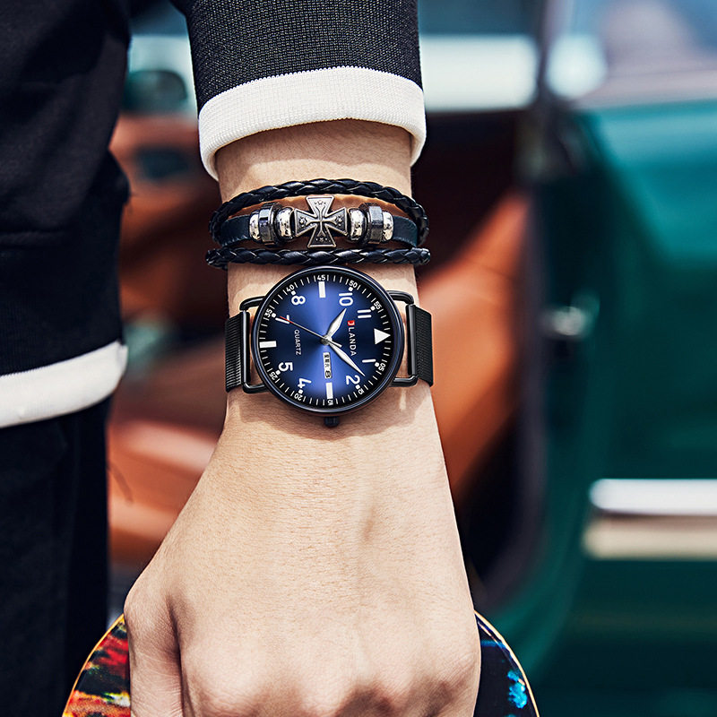 - Серебряная сетка с взрывной синей лапшой+точное время+светящаяся водонепроницаемость