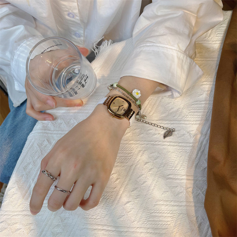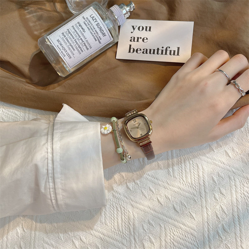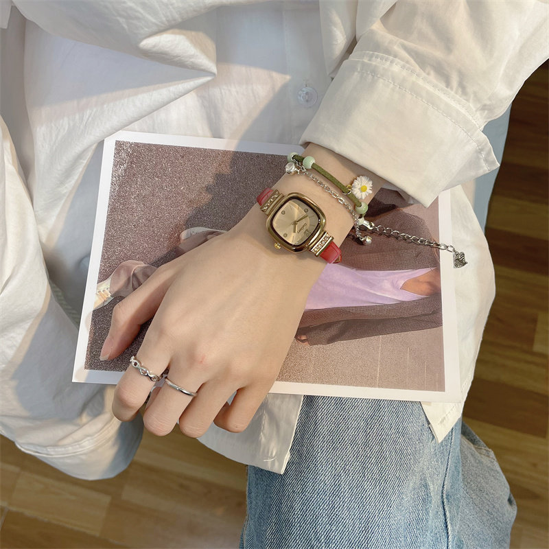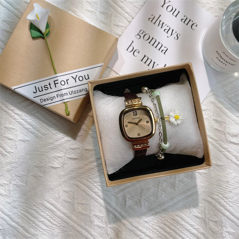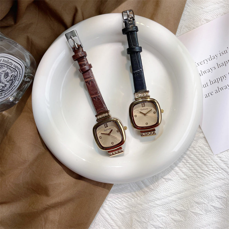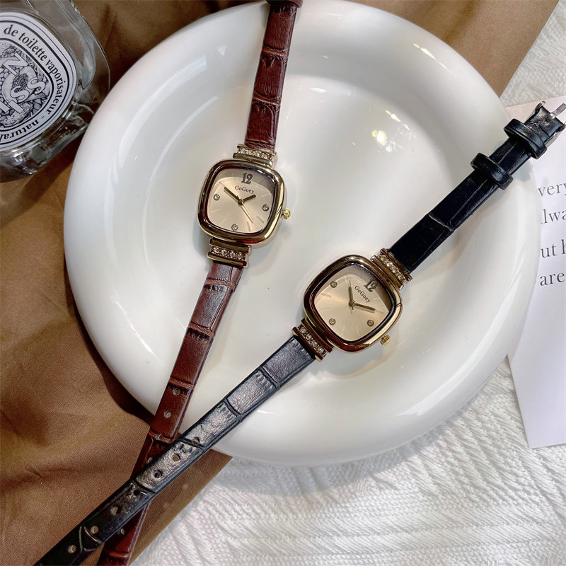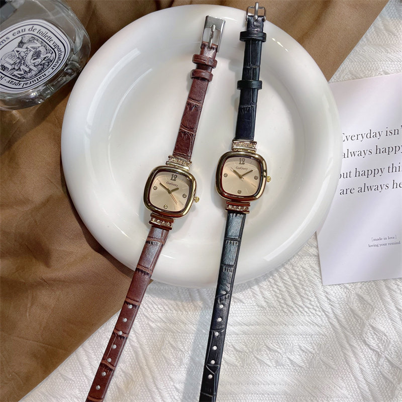 Универсальные изысканные ретро брендовые маленькие квадратные женские часы, простой и элегантный дизайн, в корейском стиле, легкий роскошный стиль