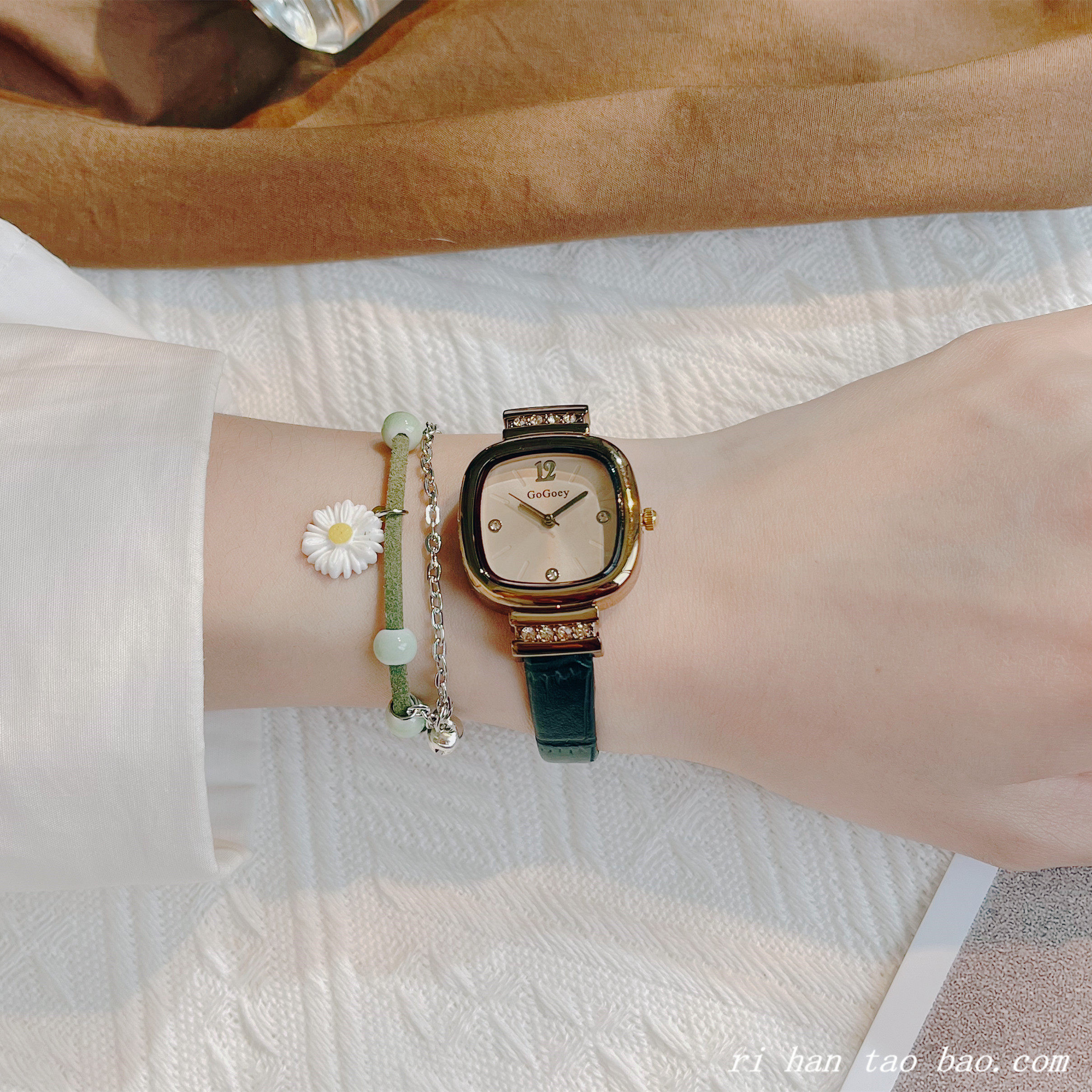 - INS Wind-Small Block-7029 Cafe с золотой лапшой-золотой чистой ремнем