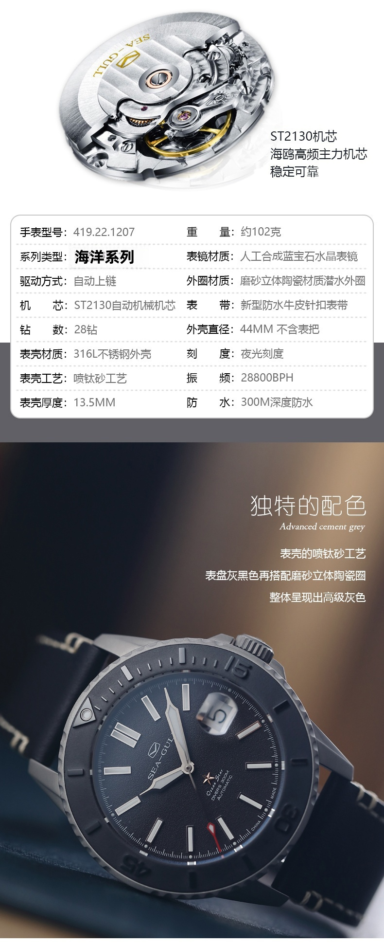 Seagull Watch 419.22.1207 Морская серия матовая керамика