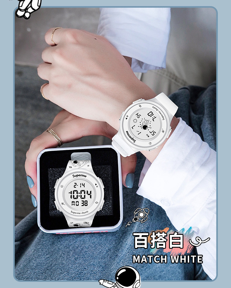 TikTok, космический космонавт, детские трендовые мужские часы подходит для мужчин и женщин для школьников, цифровые часы, простой и элегантный дизайн
