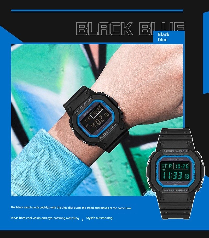 Квадратные универсальные водонепроницаемые дорожные цифровые часы, подходит для подростков