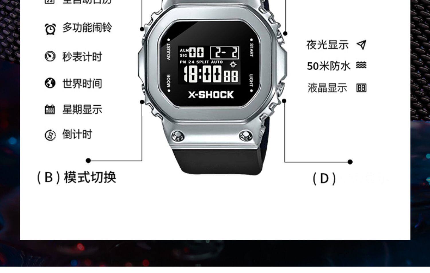 | Цвет: | X-shock-hei yaoyin [светящиеся+будильник+глубокоподобный], X-shock-cool черное золото 【Ночной свет+будильник+глубокий водонепроницаемый】, X-shock-rose gold 【Ночной свет+будильник+глубокоподобный】】, X-Shock-Ceramics White [светящиеся+будильник+глубокий водонепроницаемый], Superme-Texture Black [светящиеся+будильник+глубокий водонепроницаемый], Superme-Cool Black Gold [светящийся+будильник+глубокий водонепроницаемый], Superme-Hei yaoyin [светящийся+будильник+глубокоподобный], Superme-Ceramic White [светящиеся+будильник+глубокий водонепроницаемый] |