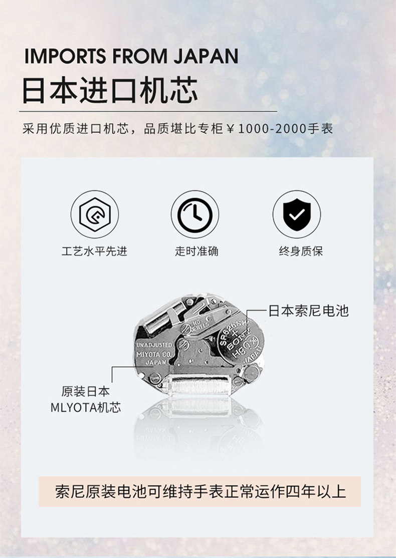 | Цвет: | Золотая инкрустация Diamond Pennel Dial [изысканная подарочная коробка+пожизненная гарантия], Felical Deal Golden Diamond Powder [изысканная подарочная коробка+квалификация жизни], Meijin Diamond Bright Starry Sky термин [изысканная подарочная коробка+квалификация на всю жизнь], Golden Diamond Emerald Green Dial [изысканная подарочная коробка+квалификация пожизненного времени], Розовое золото алмаз белый Fritillaria-Rose подарочная коробка [импортированное движение+модернизированная водонепроницаем не исчезает], Розовое золото алмазной порошок матери-розы подарочная коробка [импортированное движение+модернизированная водонепроницаем не исчезает], Розовое золото, инкрустированное бриллиантами, и яркая подарочная коробка со звездным небом [импортный механизм + улучшенная водонепроницаемость и невыцветание], Розовое золото Diamond Emerald Green-Rose Gift Box [Импорт Движение+обновление водонепроницаемость не исчезает], 3 кусочки розовых бриллиантов и белого паника [импортное движение+модернизированное водонепроницаемое без затухания], Meijin Indlaid Diamond Powder 3 -Piece Set [Импорт Движение+обновление водонепроницаемость не исчезает], Meijin Inlaid Diamond Bright Starry Sky 3 -Piece Set [Импортное движение+модернизированная водонепроницаем не исчезает], Golden Diamond Emerald Green 3 -Piece Set [Импортное движение+модернизированная водонепроницаемость не исчезает], Golden Diamond Drill White Fritillaria-Gift Box с пяти частями [импортированное движение+обновление водонепроницаемость не исчезает], Розовый золото алмазной порошок матери с пятью частями [импортированное движение+обновление водонепроницаемость не исчезает], Golden Diamond Bright Starry Sky-Gift Box Set [Импорт Движение+обновление водонепроницаемость не исчезает], Изумрудная зеленая подарочная коробка, импортный водонепроницаемый комплект |