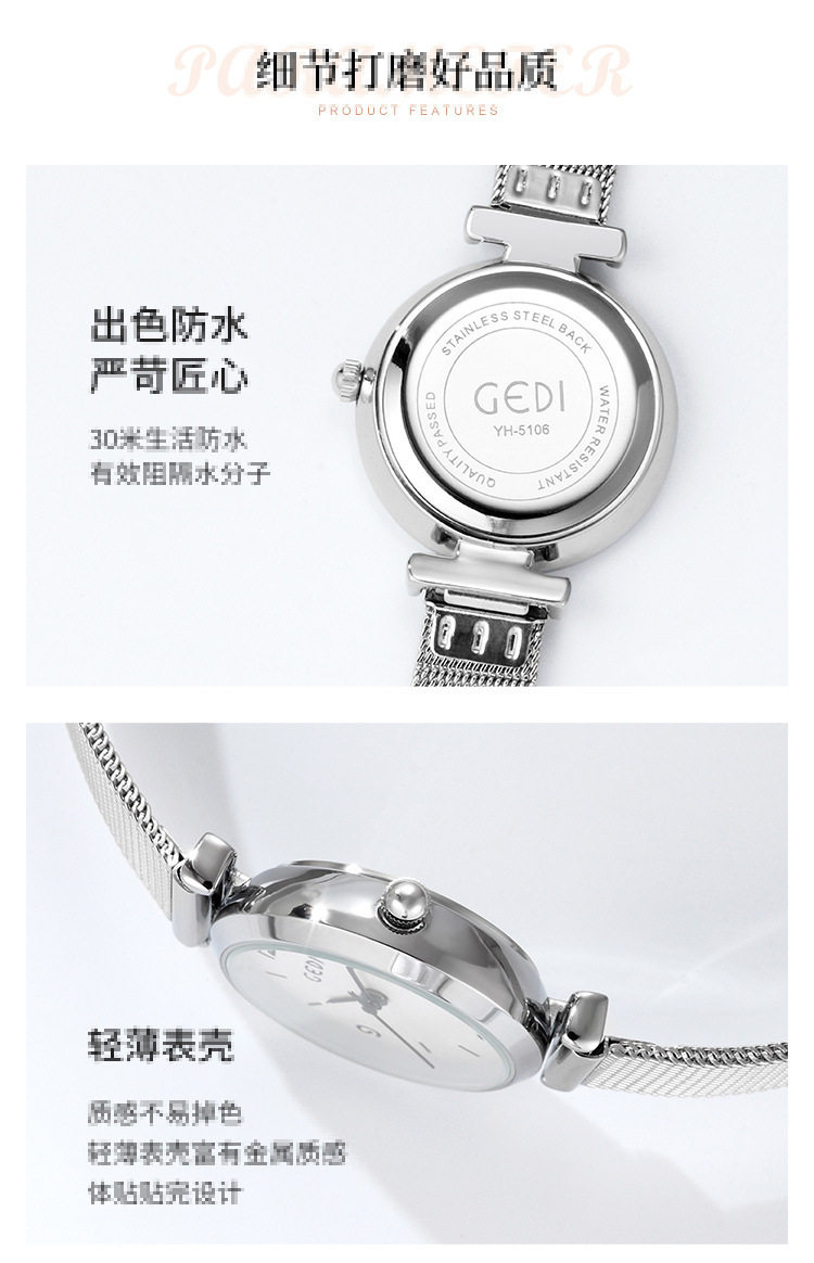 Водонепроницаемые небольшие дизайнерские кварцевые часы, женский стиль, изысканный стиль, легкий роскошный стиль, простой и элегантный дизайн