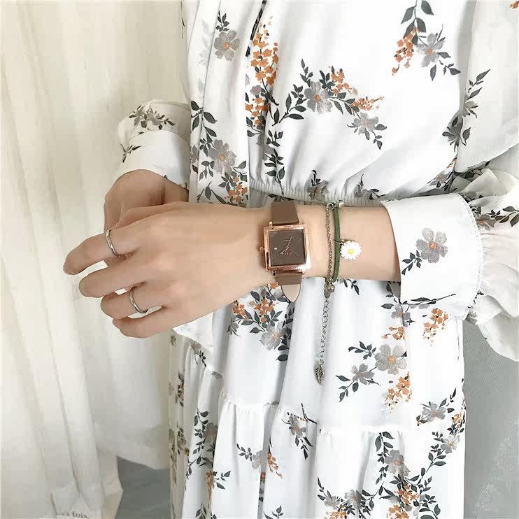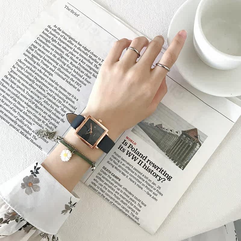 Ретро квадратные брендовые часы, французский стиль, женский стиль, изысканный стиль, простой и элегантный дизайн, легкий роскошный стиль