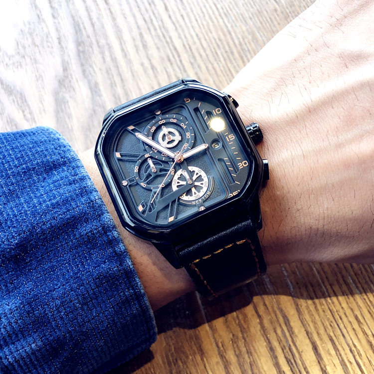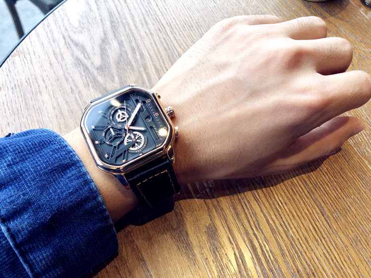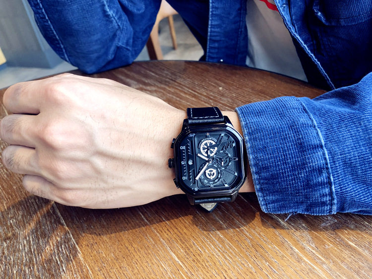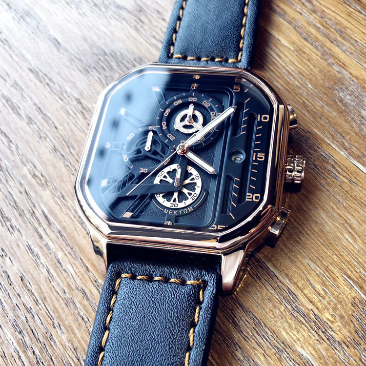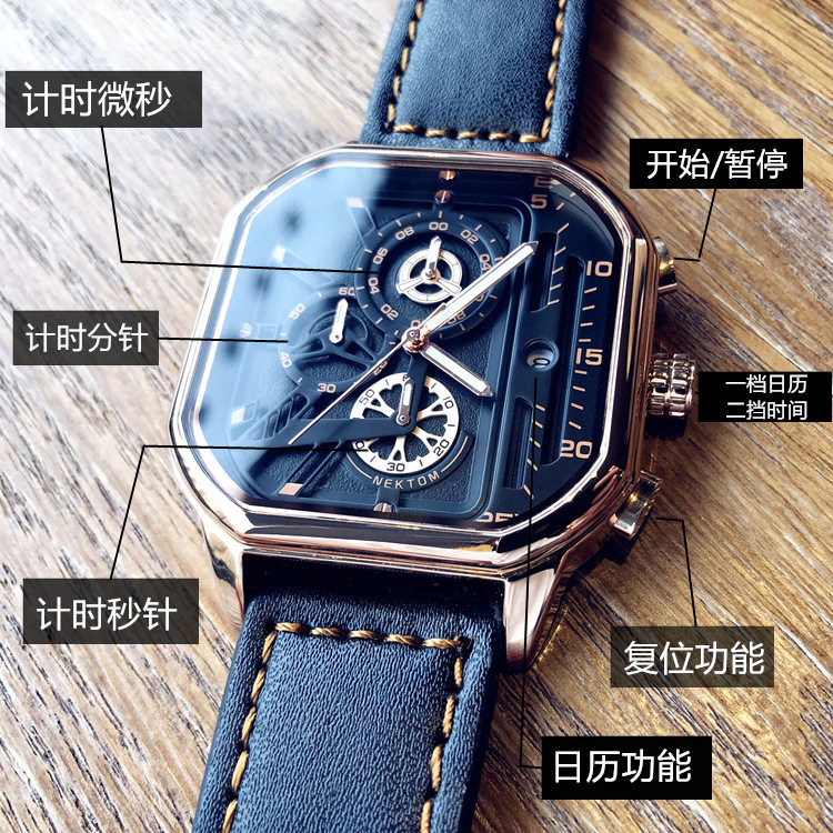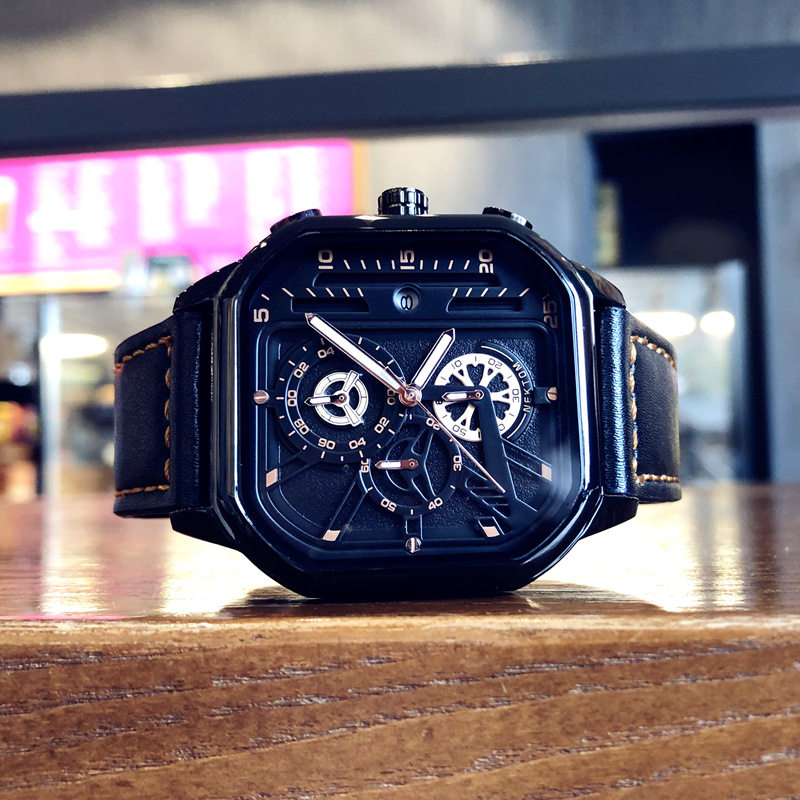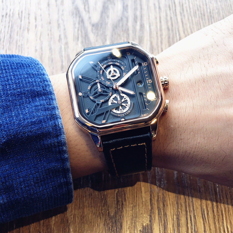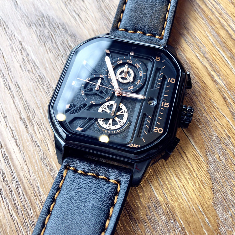Квадратный трендовый универсальный браслет, водонепроницаемые мужские часы, ремень, из натуральной кожи, в корейском стиле