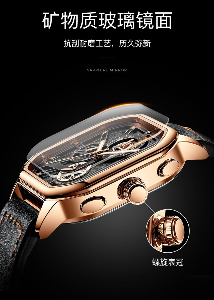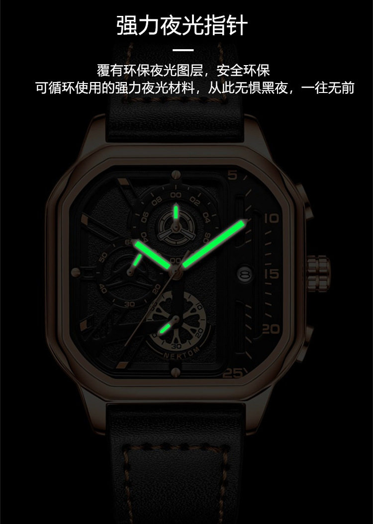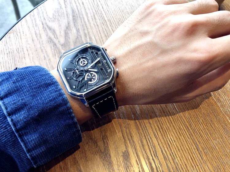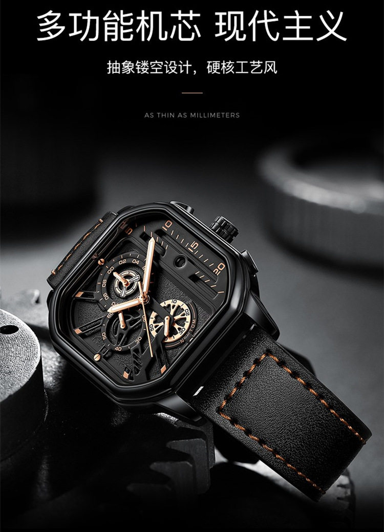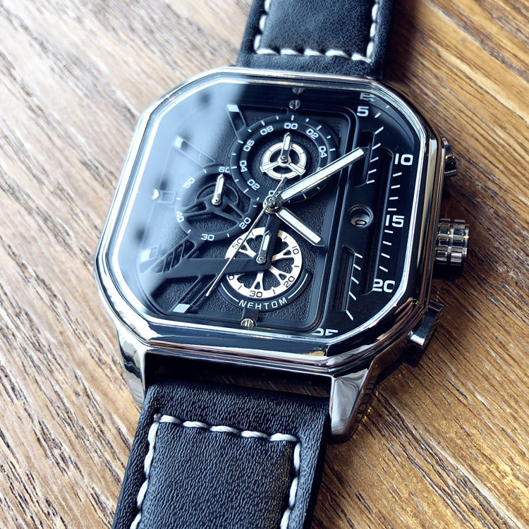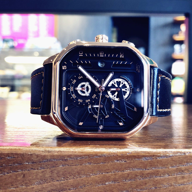 Квадратный трендовый универсальный браслет, водонепроницаемые мужские часы, ремень, из натуральной кожи, в корейском стиле