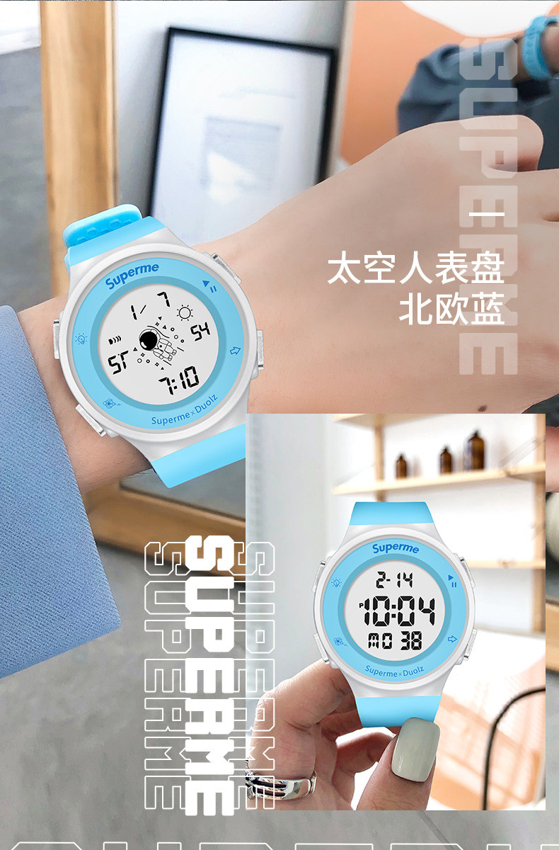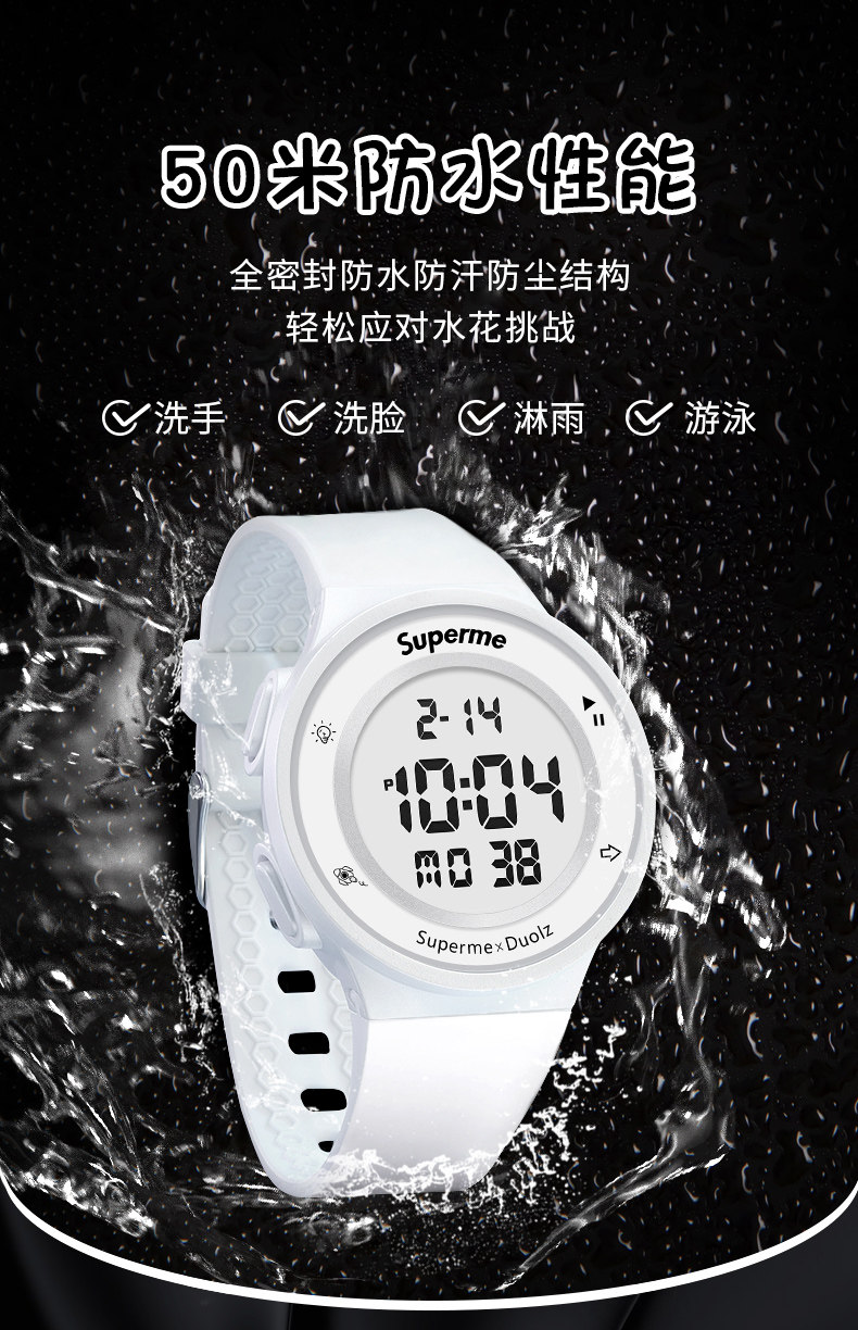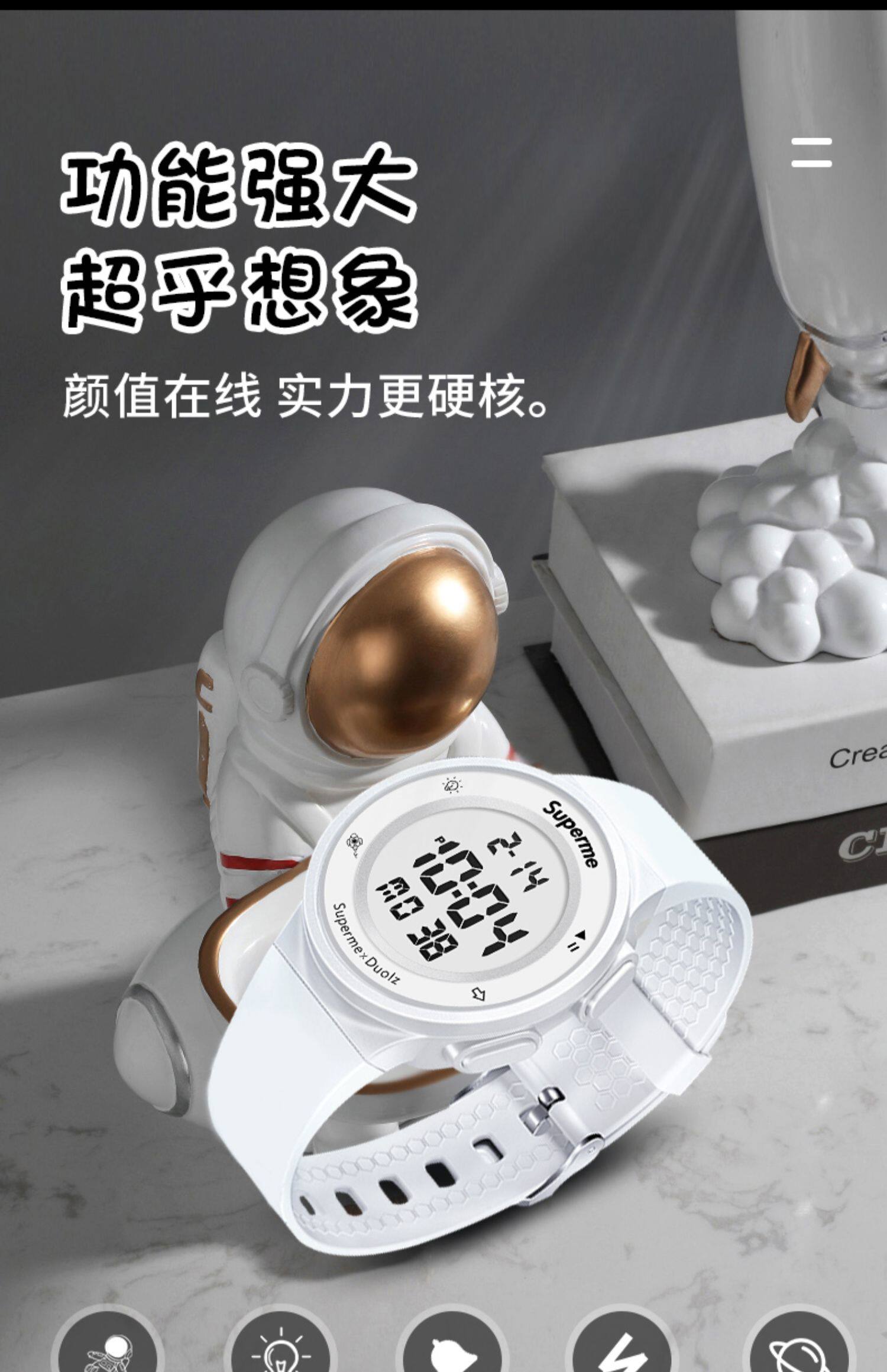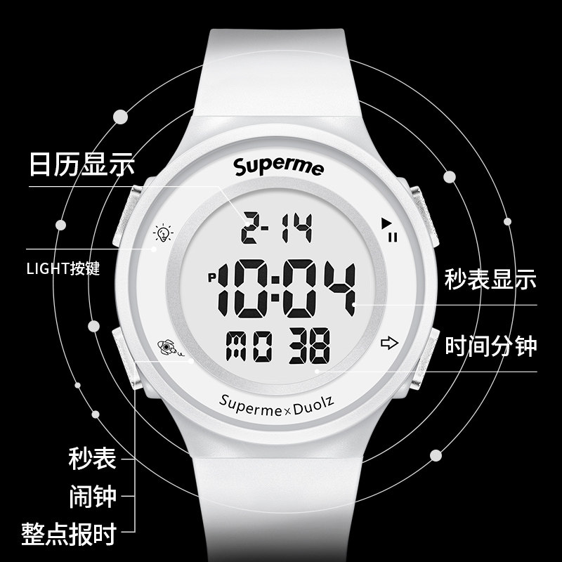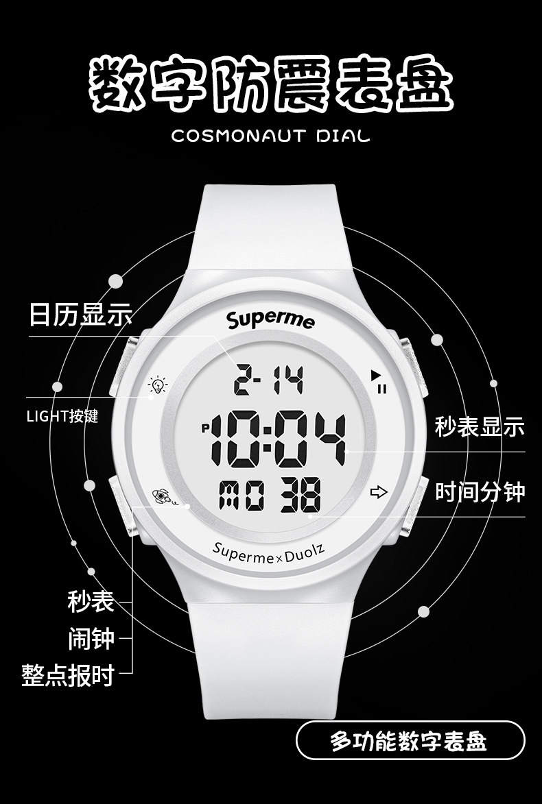 - Космосмен белый ремень-цифровой черный [будильник+смешные+водонепроницаемые]
