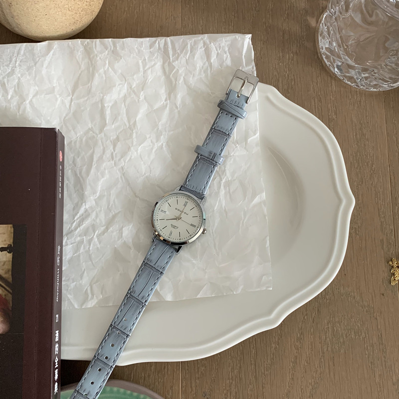 Маленькие свежие синие кварцевые часы для отдыха, 2021 года, в корейском стиле, простой и элегантный дизайн