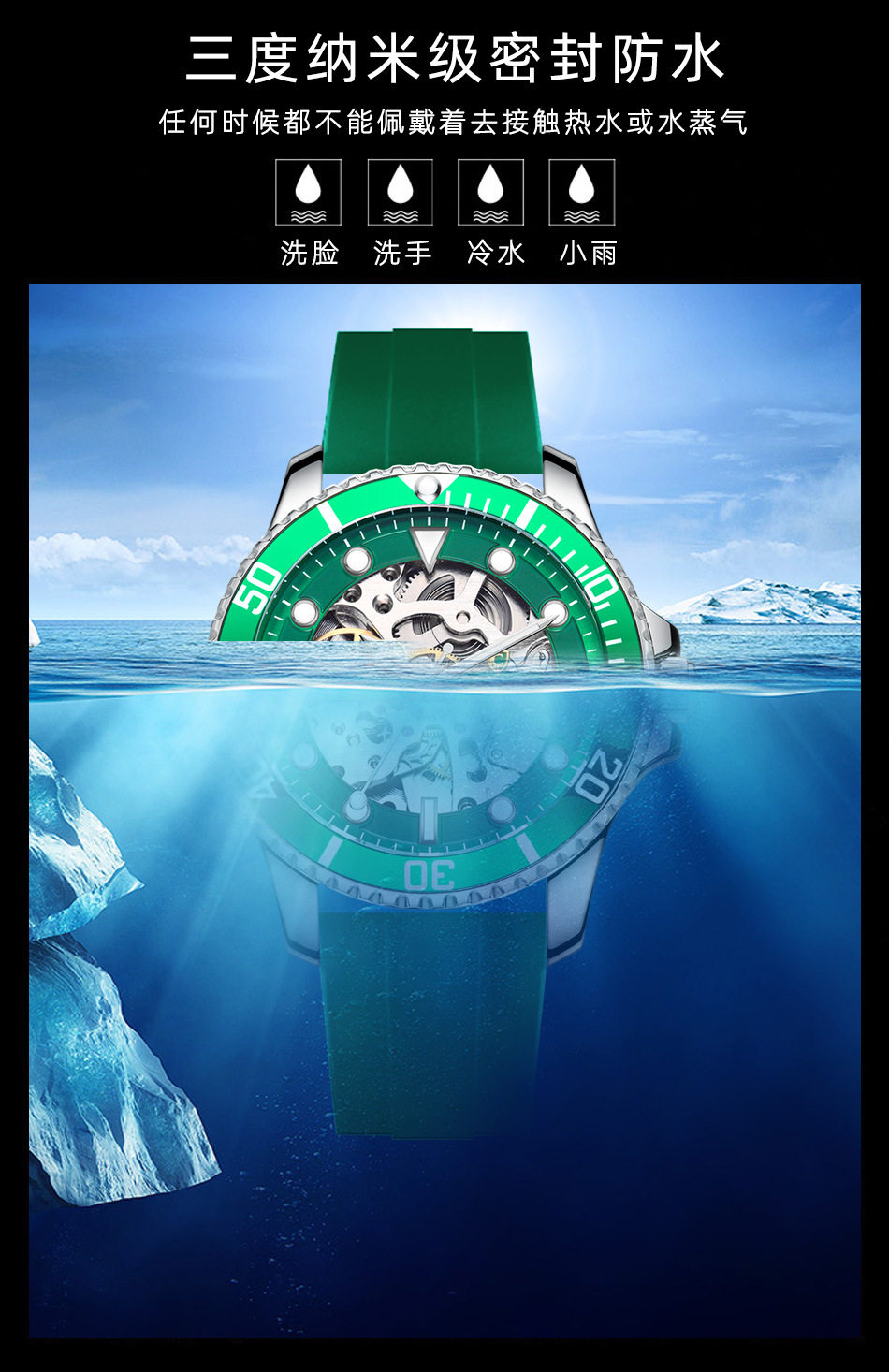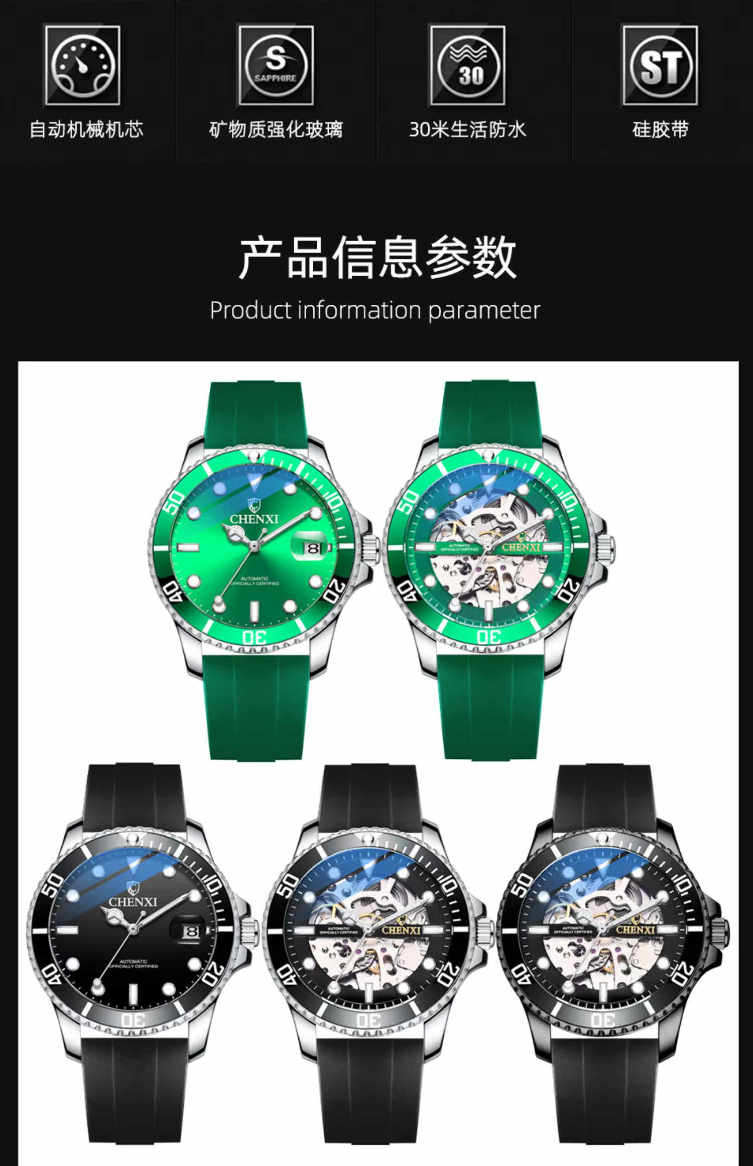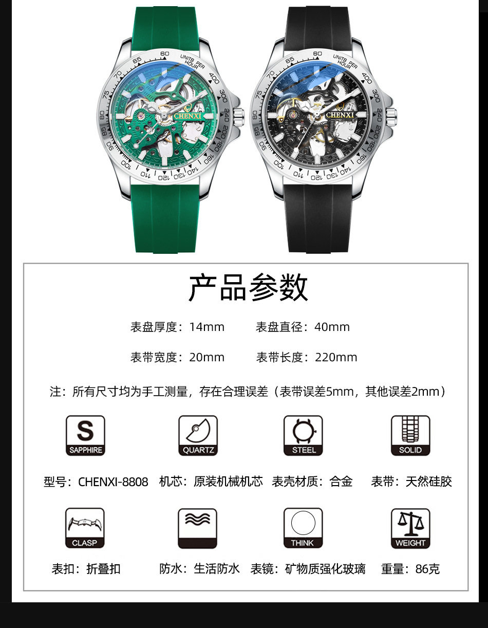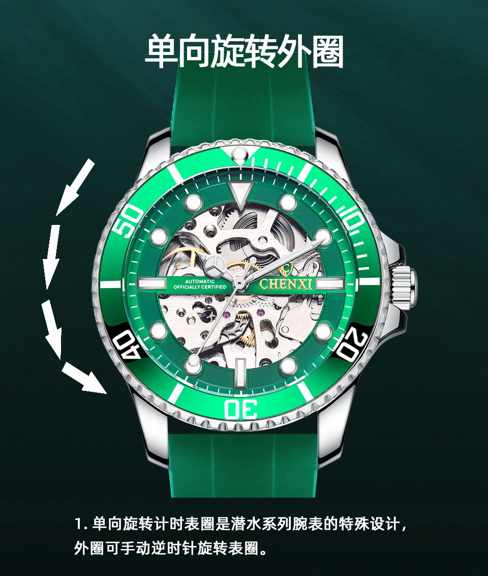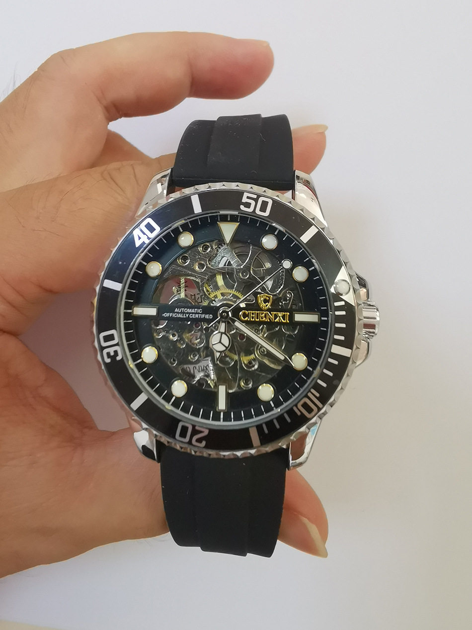 Силиконовые мужские часы, лента, модные автоматические механические водонепроницаемые легкие часы, 2021 года, новая коллекция, полностью автоматический