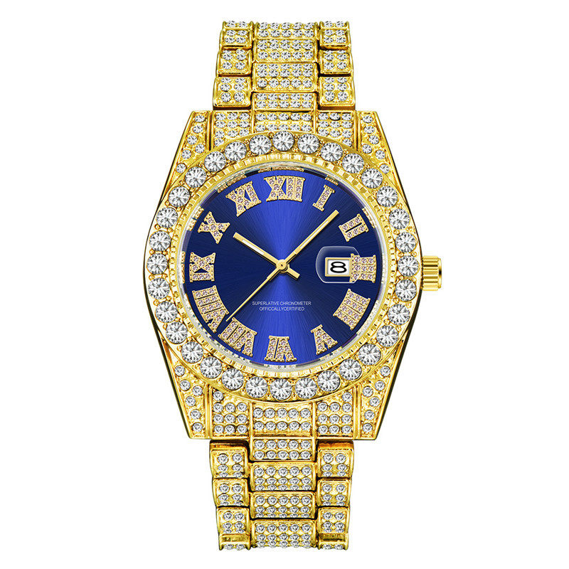 Бриллиантовые мужские часы из натурального камня, трендовые золотые часы в стиле хип-хоп с бабочкой, кварцевые часы для школьников, инкрустировано бриллиантами