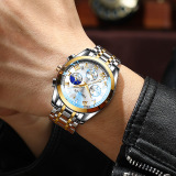Мужские часы, механические водонепроницаемые механические часы, трендовые кварцевые часы, полностью автоматический