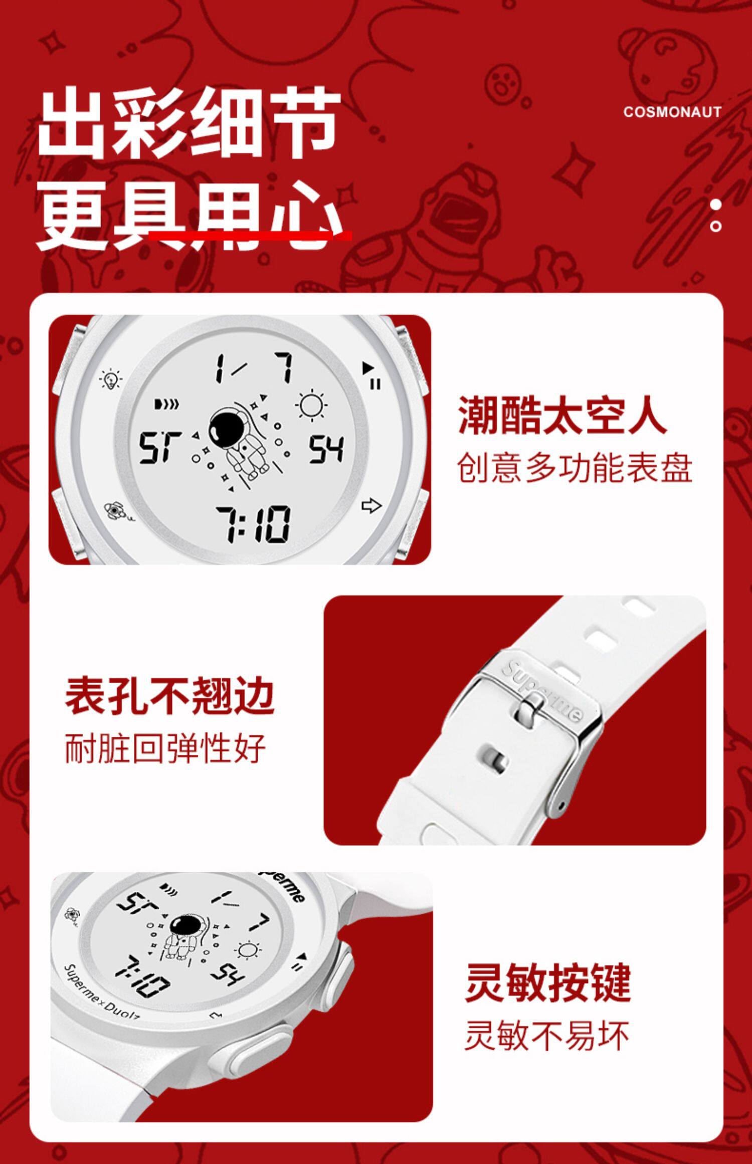 - Космосмен белый ремень-цифровой черный [будильник+смешные+водонепроницаемые]