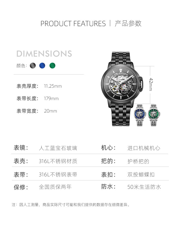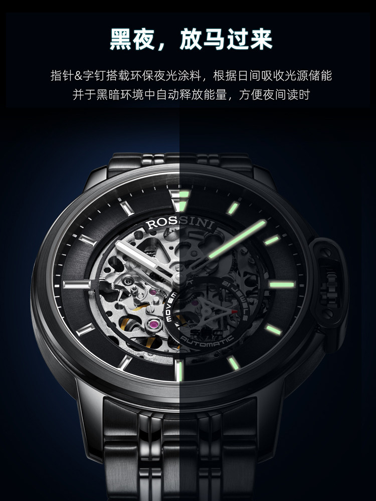 Флагманский магазин Rosini Mechanical Men's Watch Medal 2.0 Full Hollow Night Light Waterpronation Men's Watch 921793