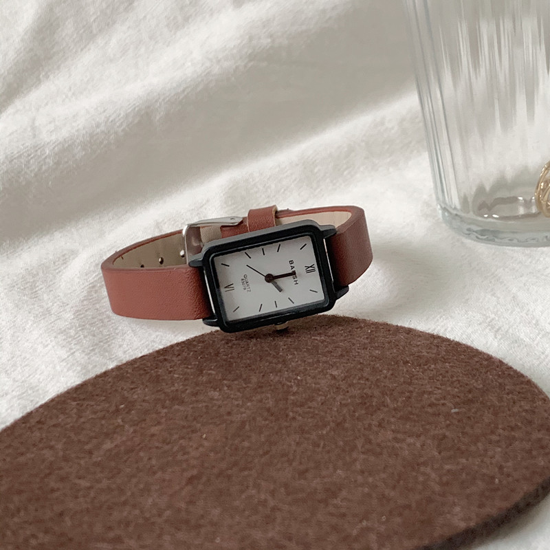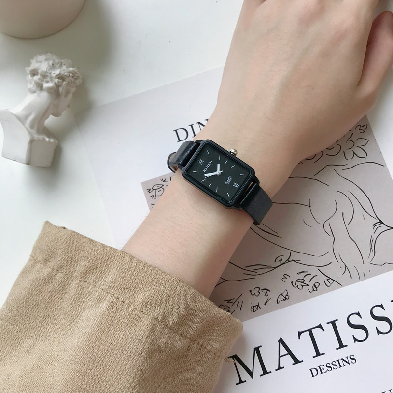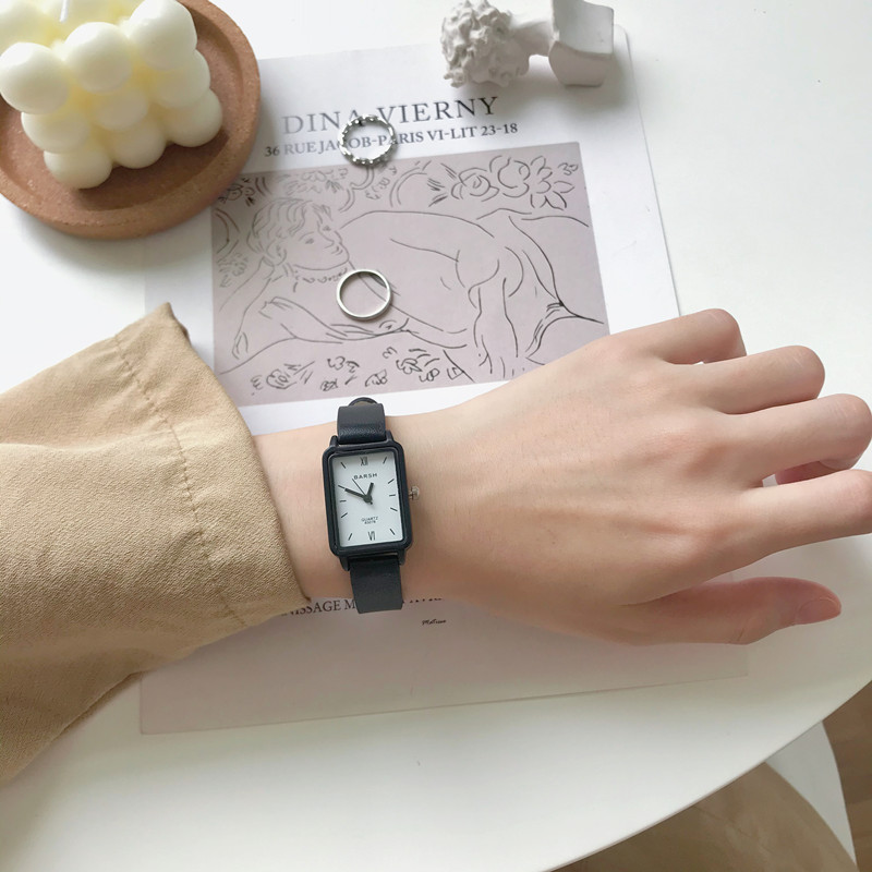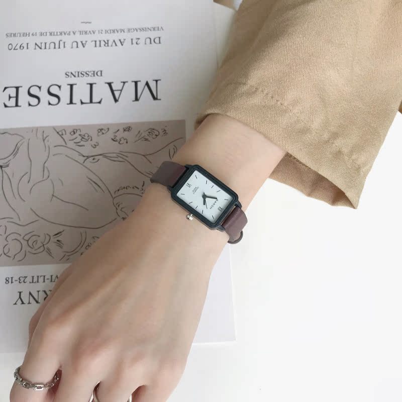 Маленькие квадратные модные ретро трендовые часы, простой и элегантный дизайн, в корейском стиле