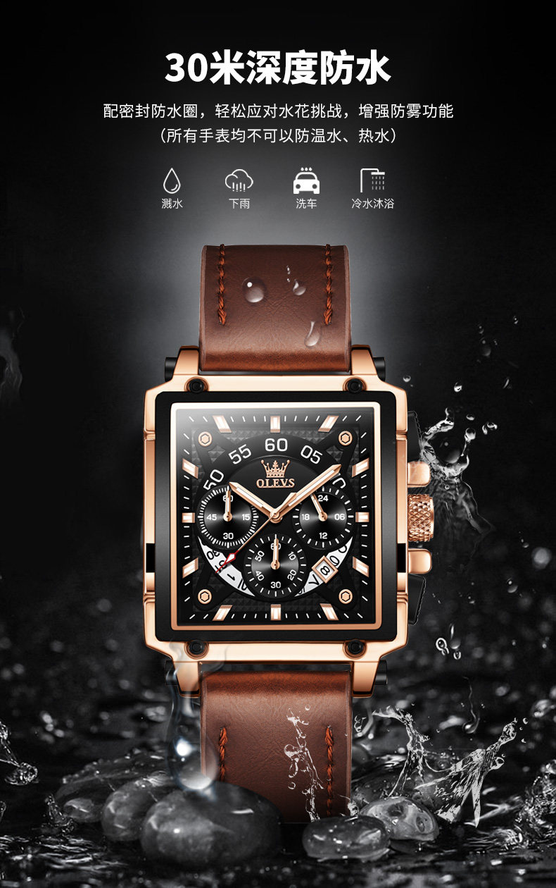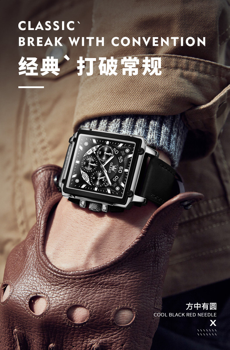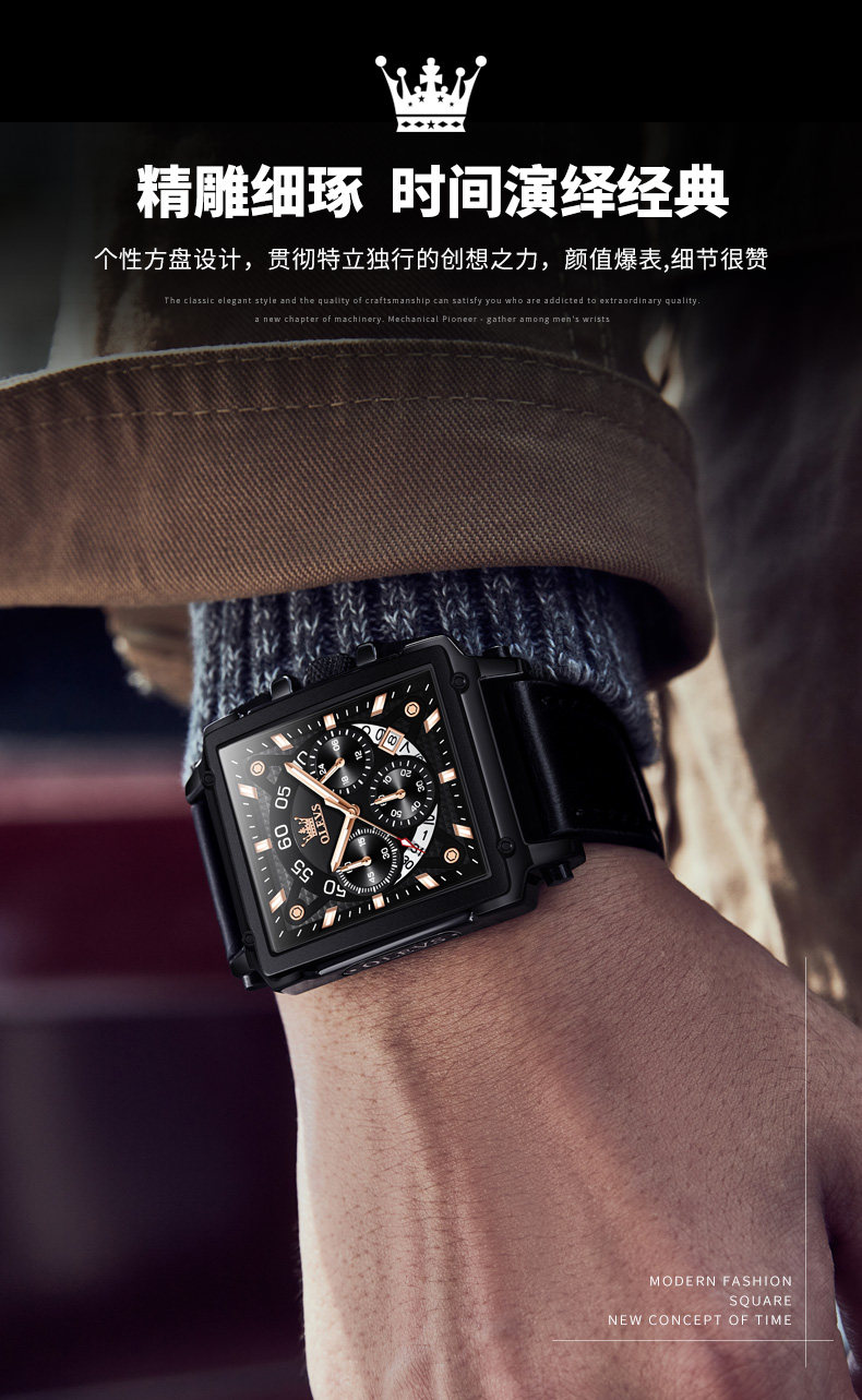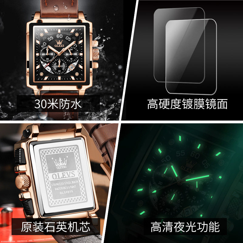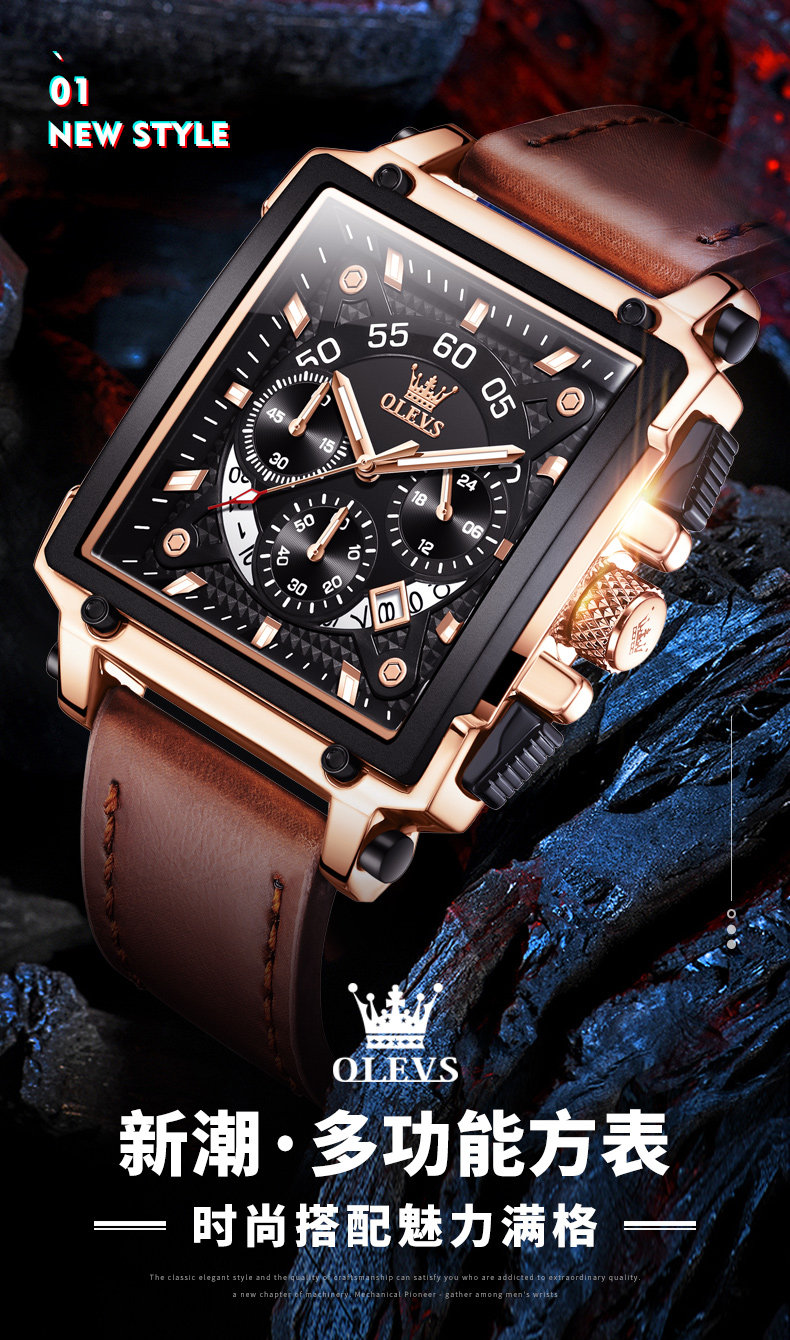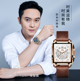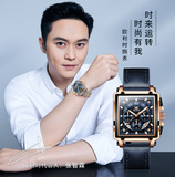 Квадратные швейцарские часы, мужские часы, ремень, вместительный и большой циферблат, знаменитые часы, Швейцария, городской стиль