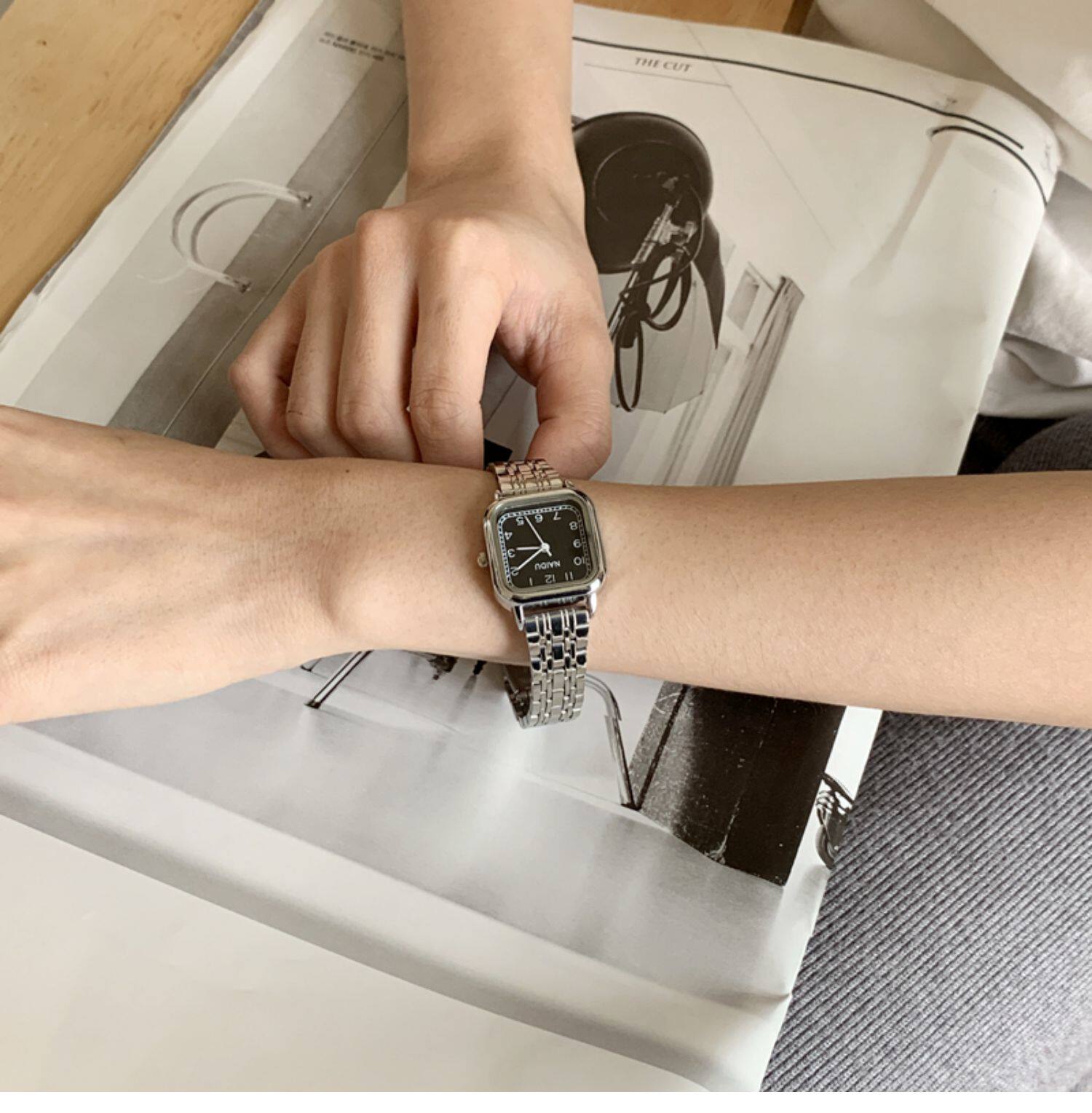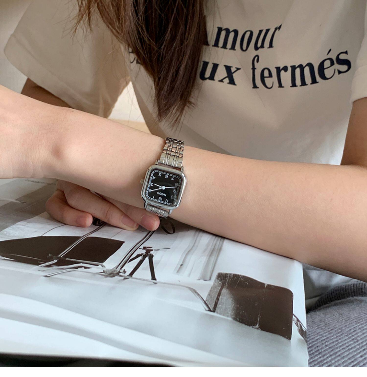 Ретро модные часы, металлический стальной ремешок, браслет, изысканный стиль, легкий роскошный стиль, простой и элегантный дизайн