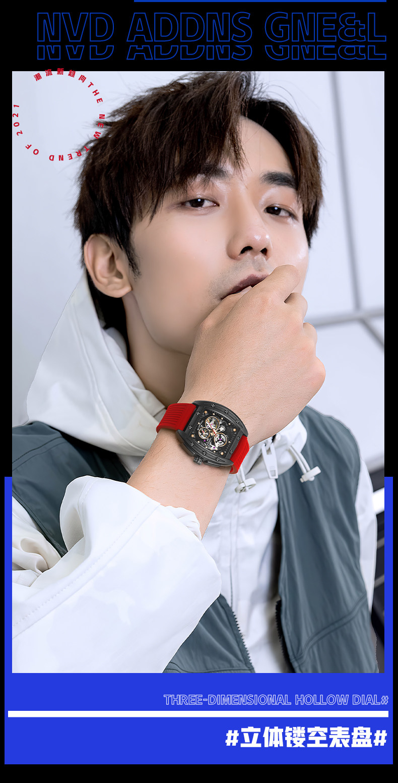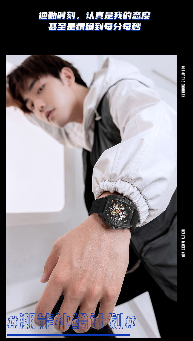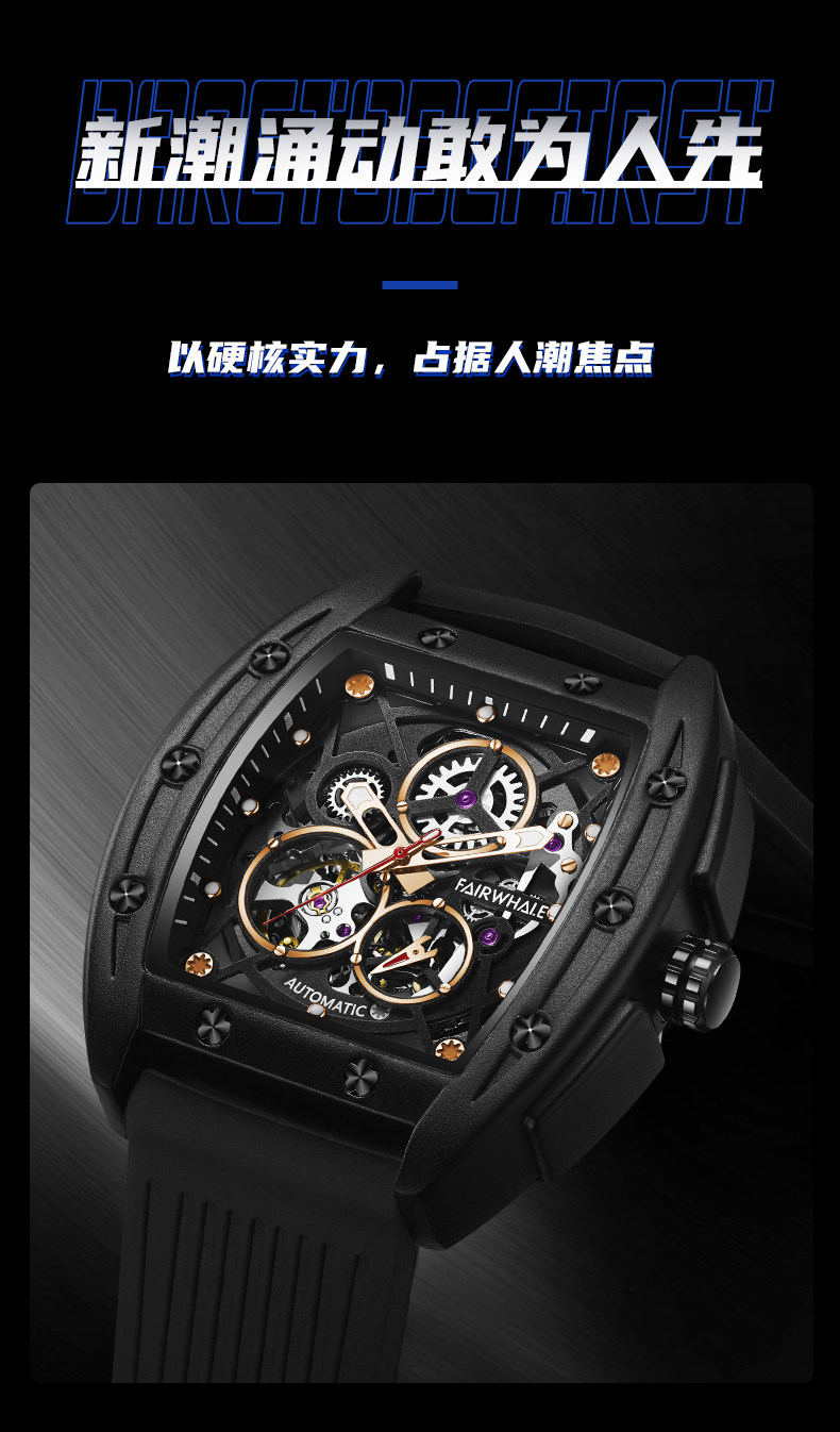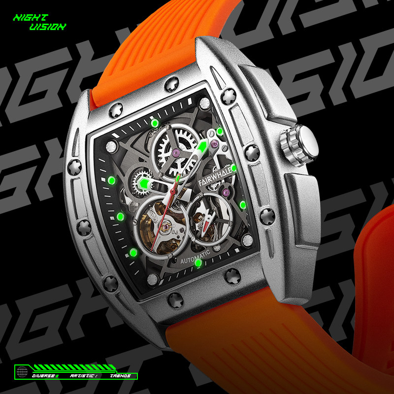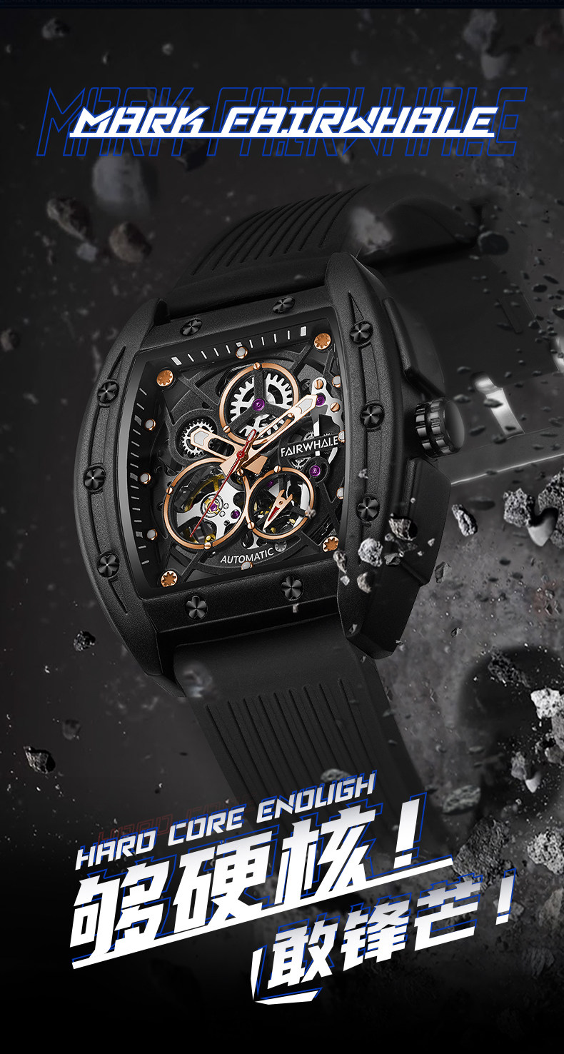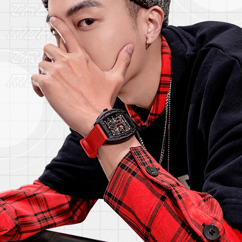 Марк Хуафей Вин Баррел Новый бренд Полый автоматический автоматический механический прилив часы мужской квадратный модный модный