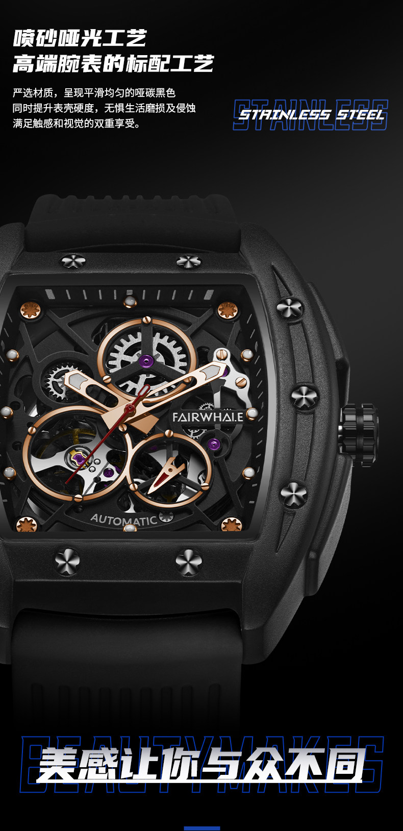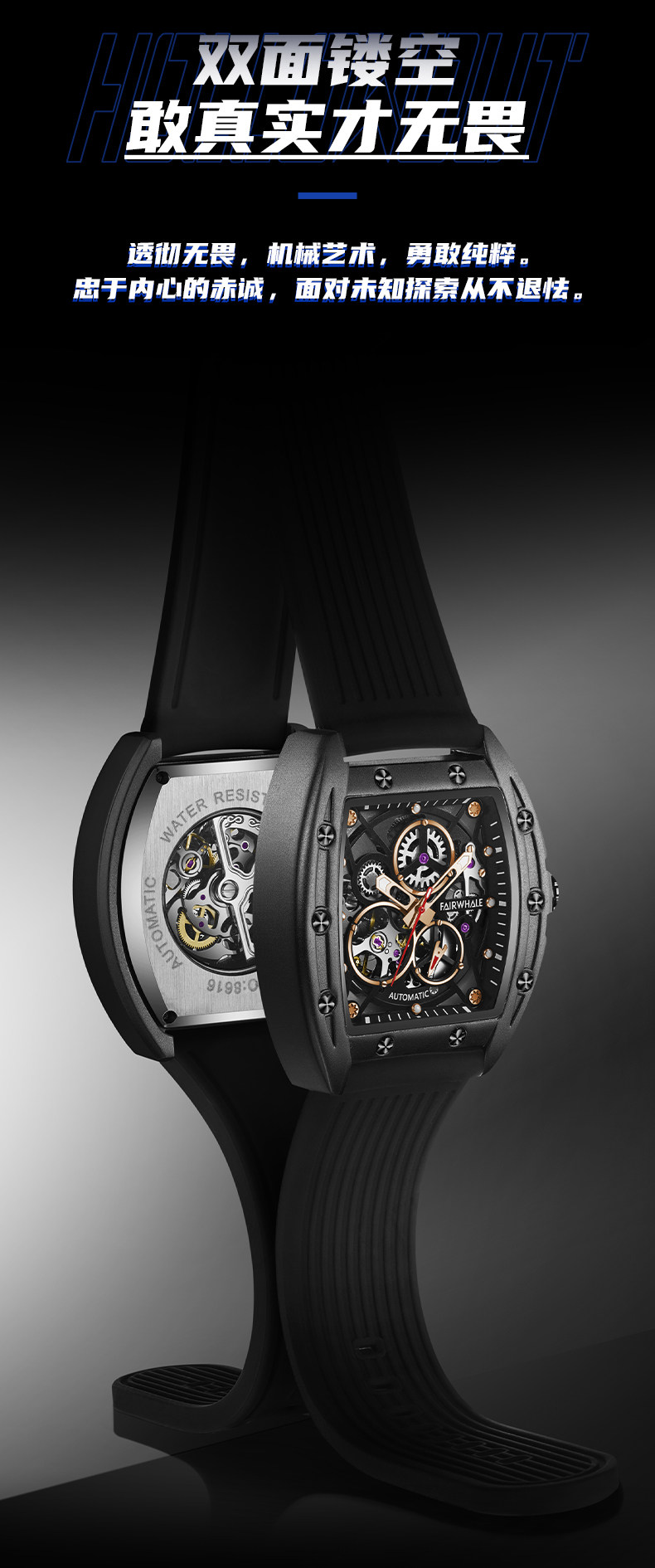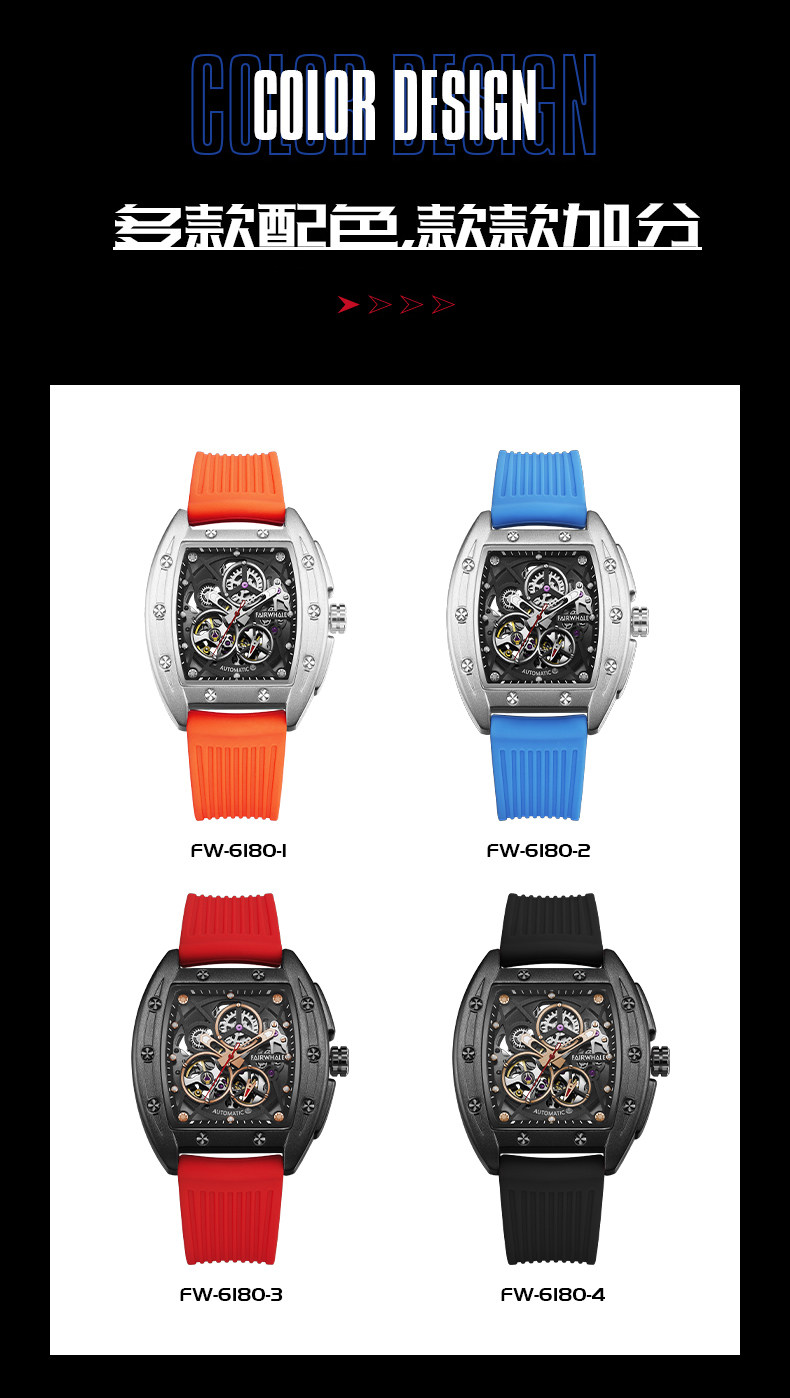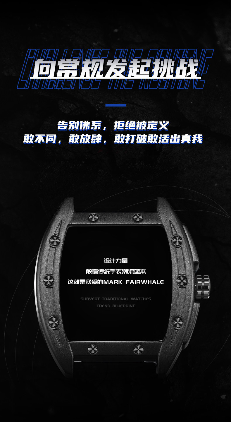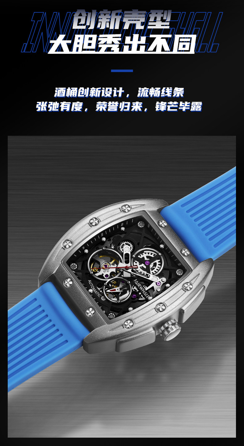 Марк Хуафей Вин Баррел Новый бренд Полый автоматический автоматический механический прилив часы мужской квадратный модный модный