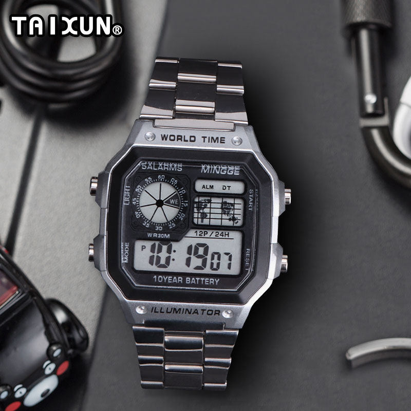 Универсальный водонепроницаемый ретро стальной ремешок, модные квадратные цифровые часы, изысканный стиль