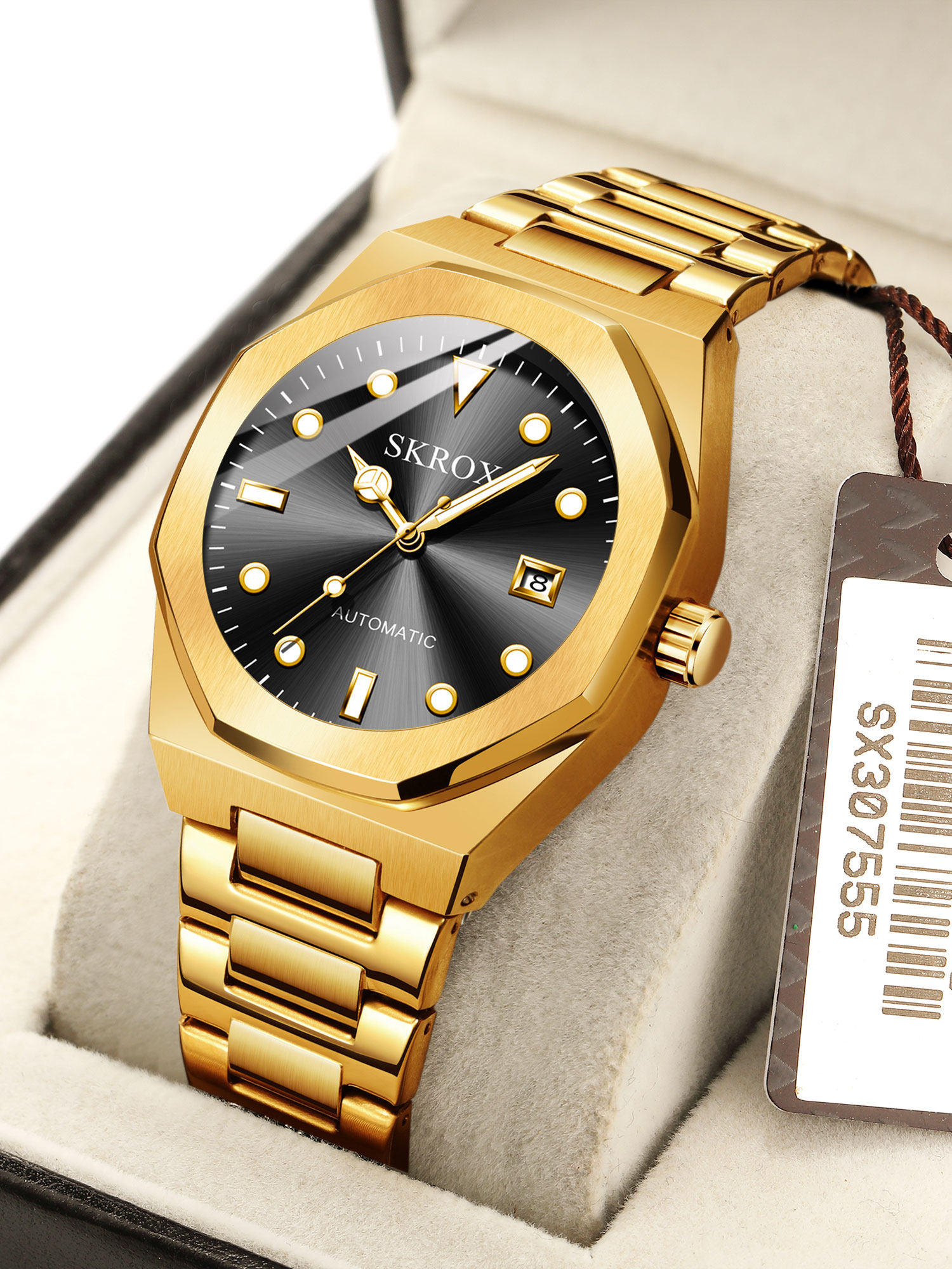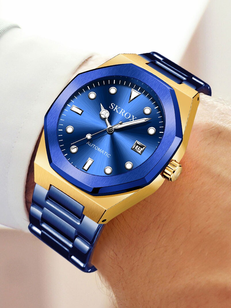 Высококлассные квадратные знаменитые часы, водонепроницаемый календарь, механические механические часы из нержавеющей стали, стальной ремешок, мужские часы, полностью автоматический
