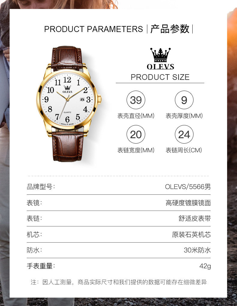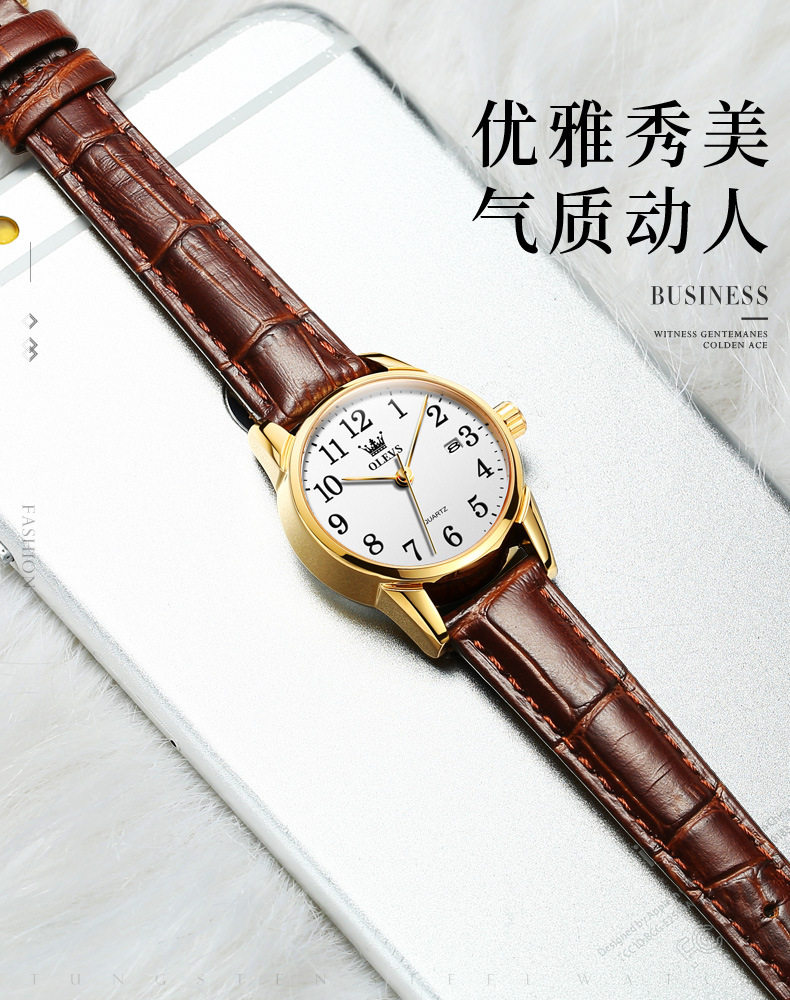 Часы для влюбленных, мужской водонепроницаемый календарь, ремень, простой и элегантный дизайн, из натуральной кожи