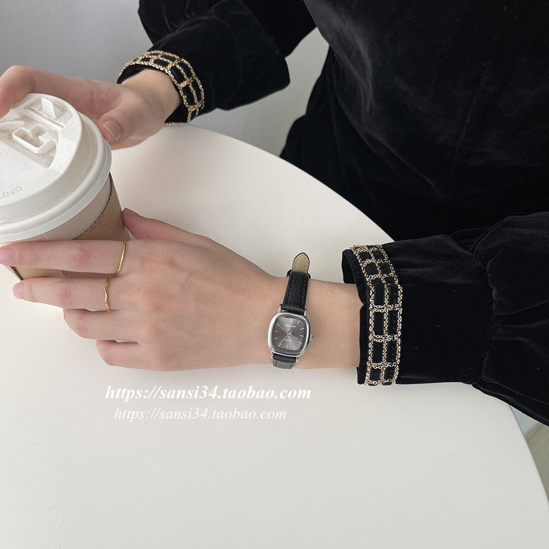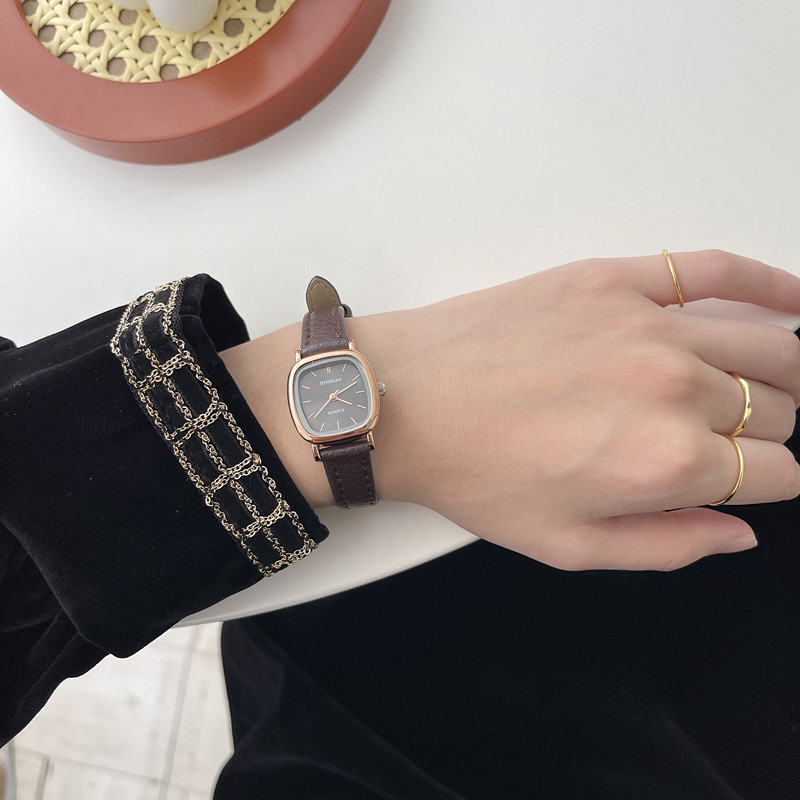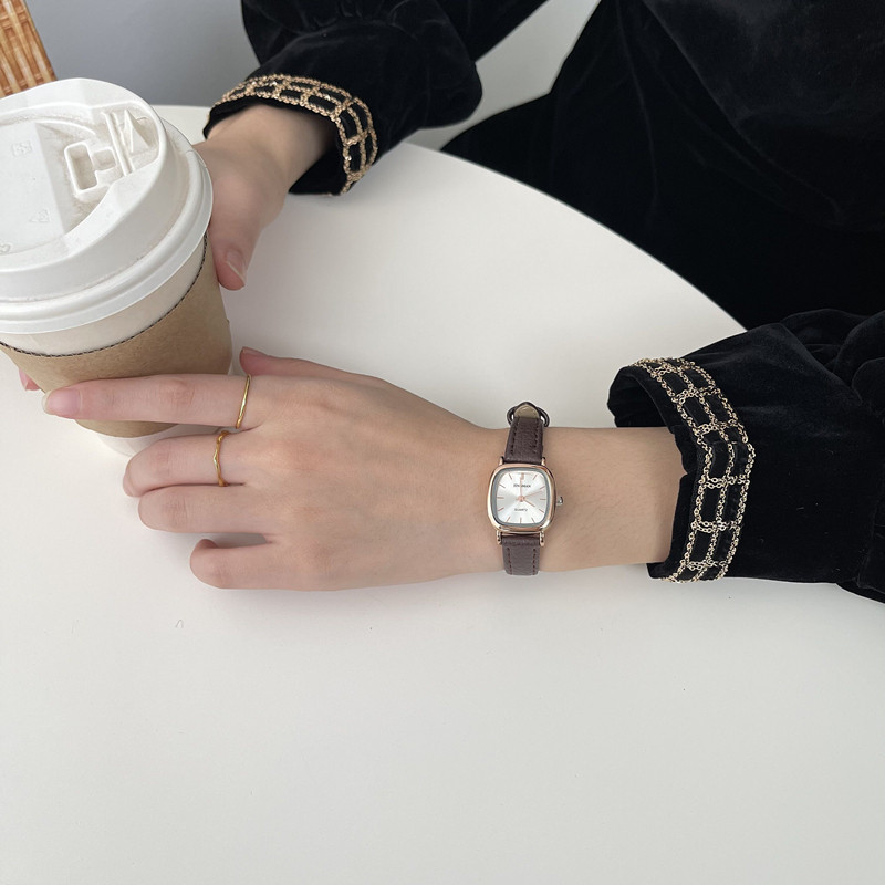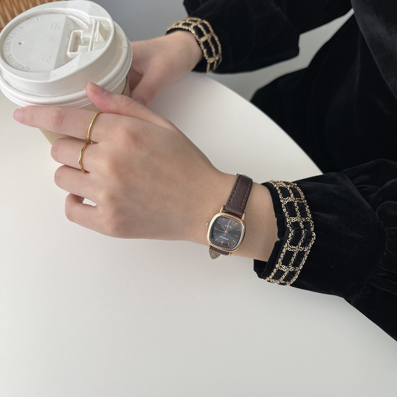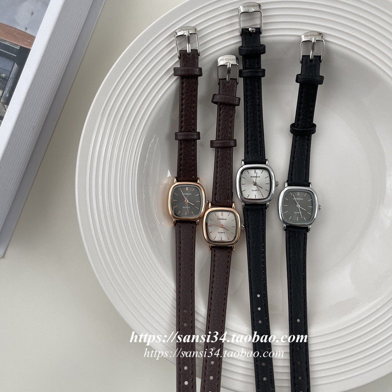Ретро квадратный маленький циферблат, модный ремень, часы, в корейском стиле, простой и элегантный дизайн