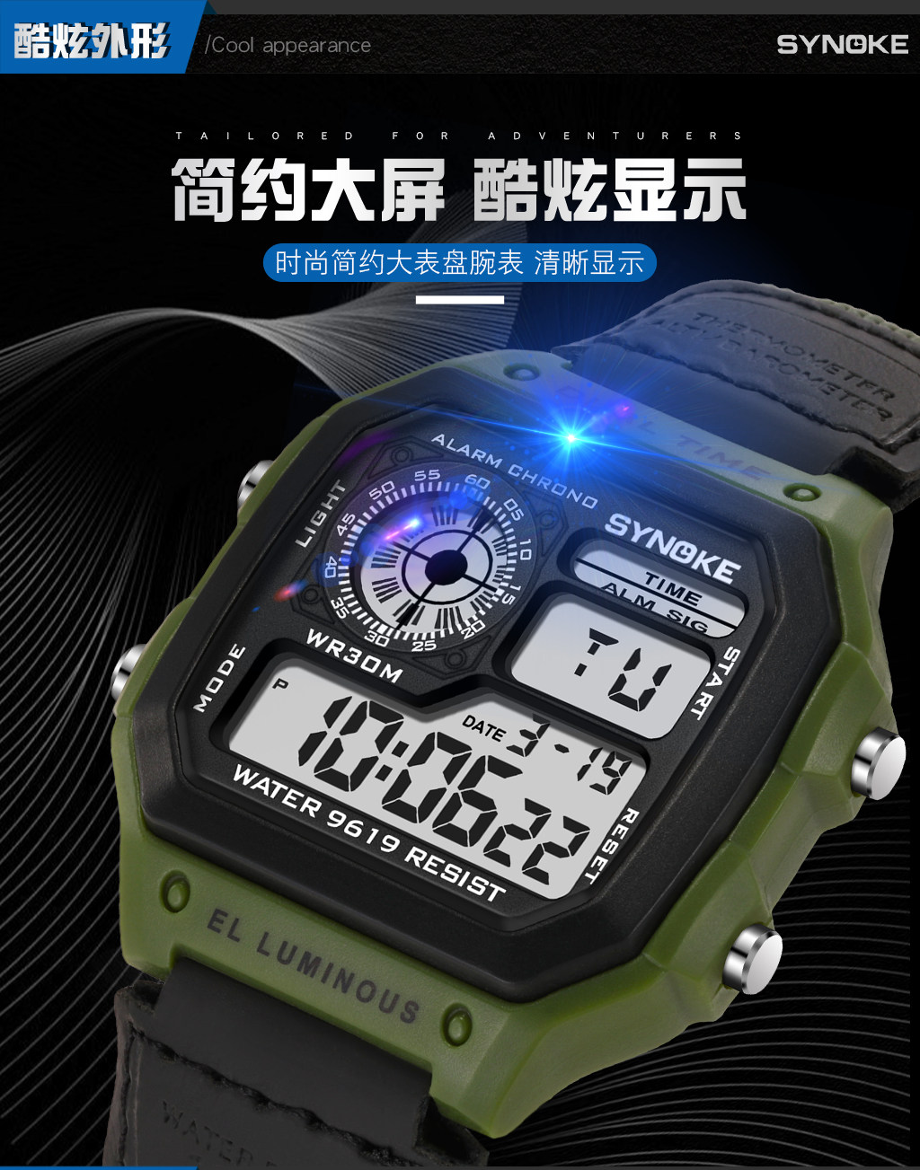 Спортивные водонепроницаемые цифровые часы, универсальный ретро браслет, циферблат