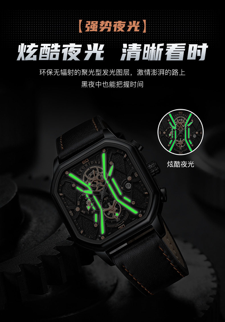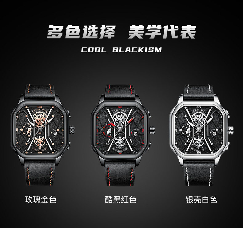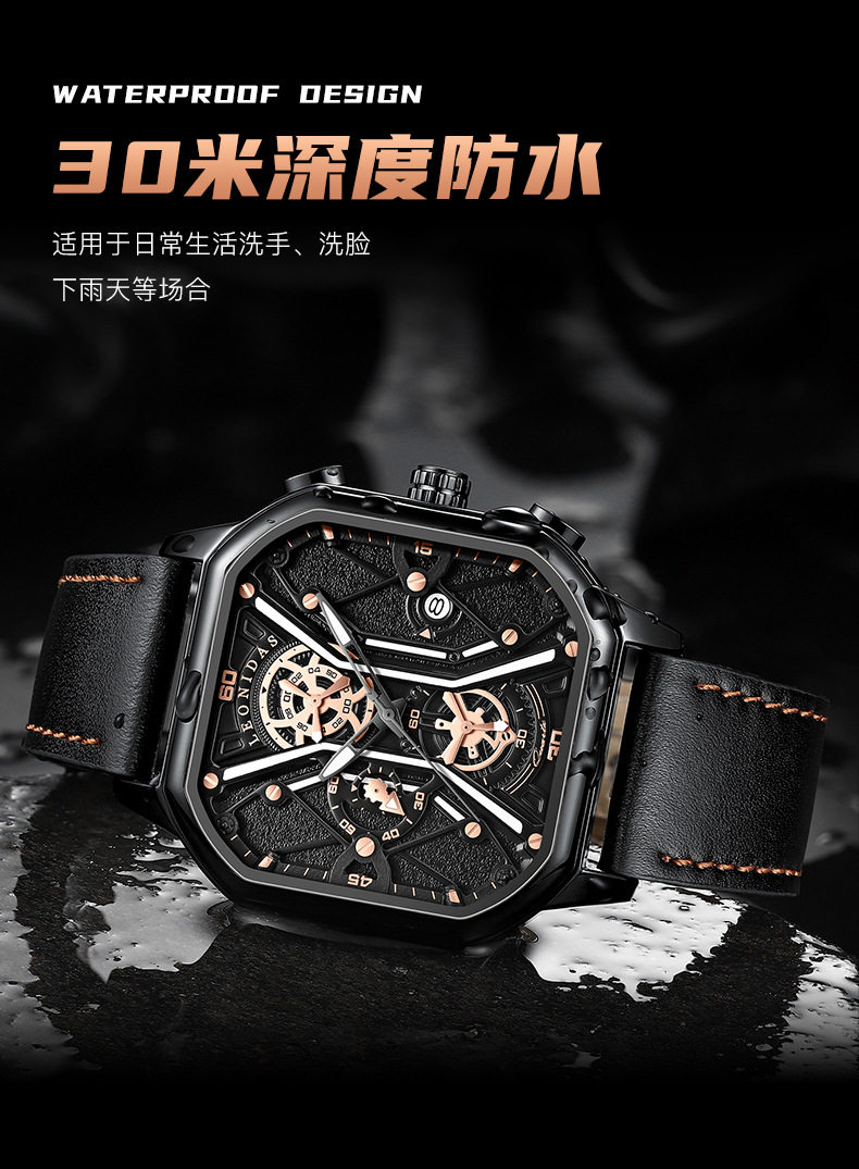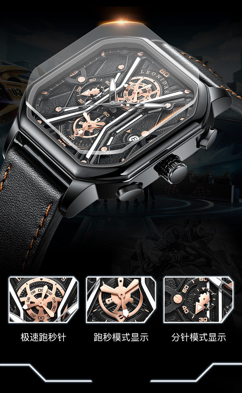Квадратные механические мужские часы, водонепроницаемый циферблат, 2024 года, из натуральной кожи
