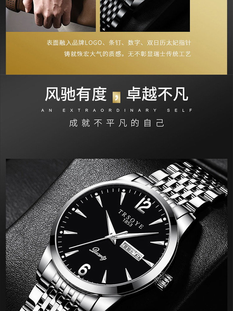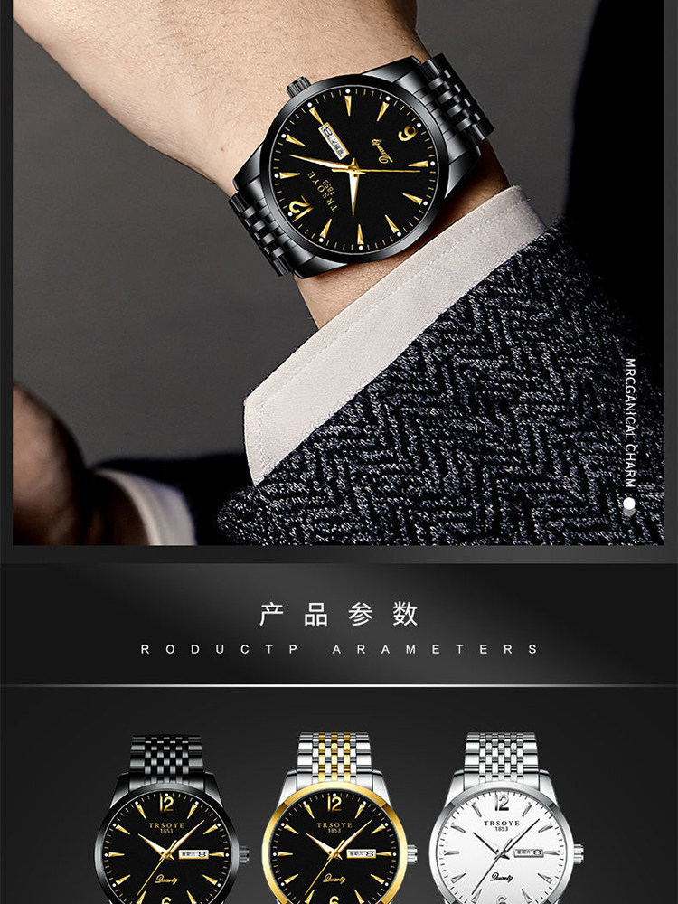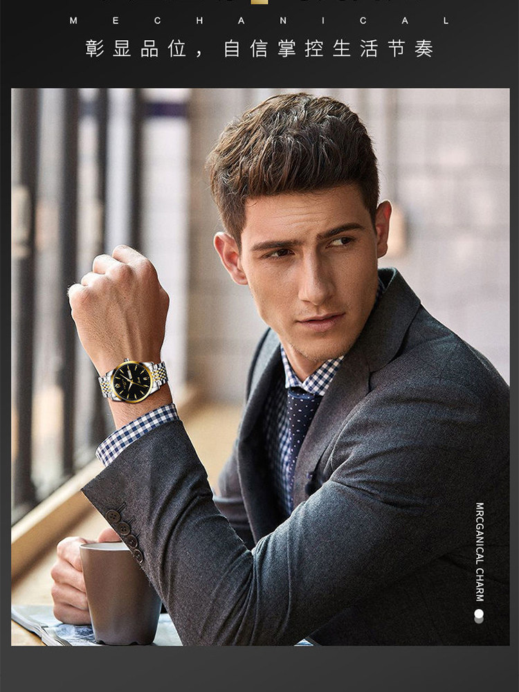Мужские часы, механические водонепроницаемые кварцевые механические часы для отдыха, Швейцария, полностью автоматический