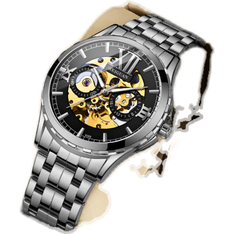Механические механические часы, мужские часы, ремень, водонепроницаемый двусторонний стальной ремешок из нержавеющей стали, из натуральной кожи, полностью автоматический