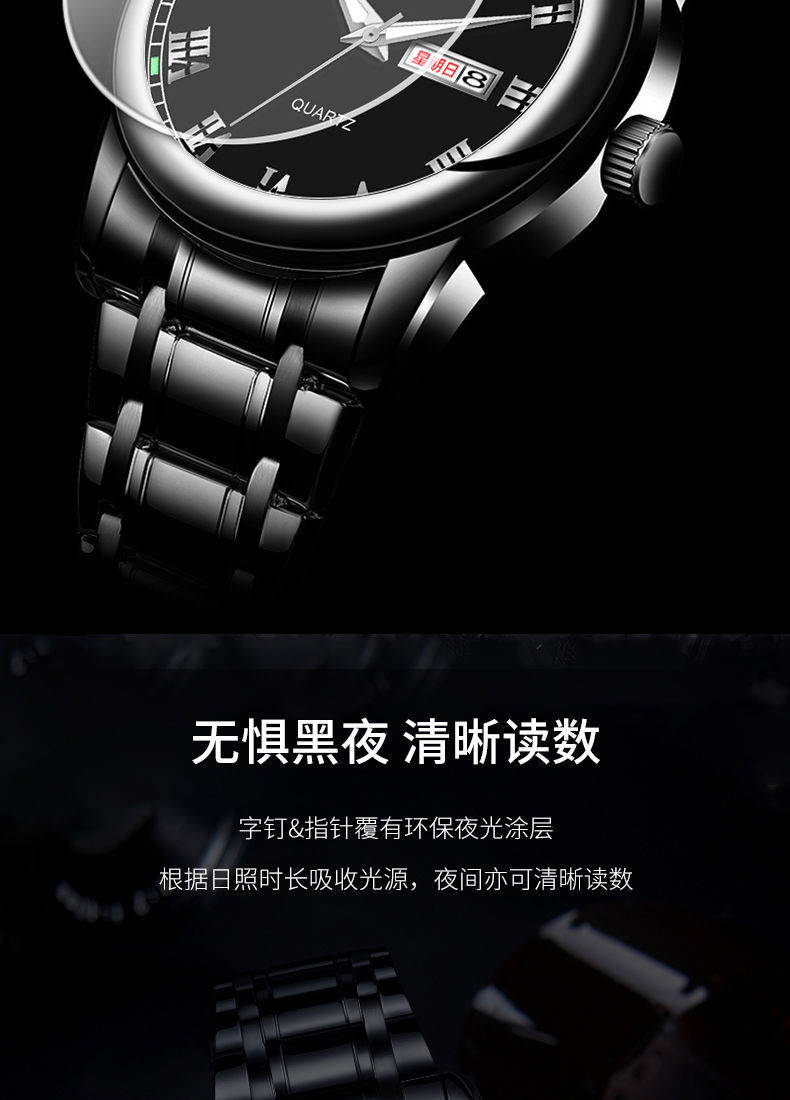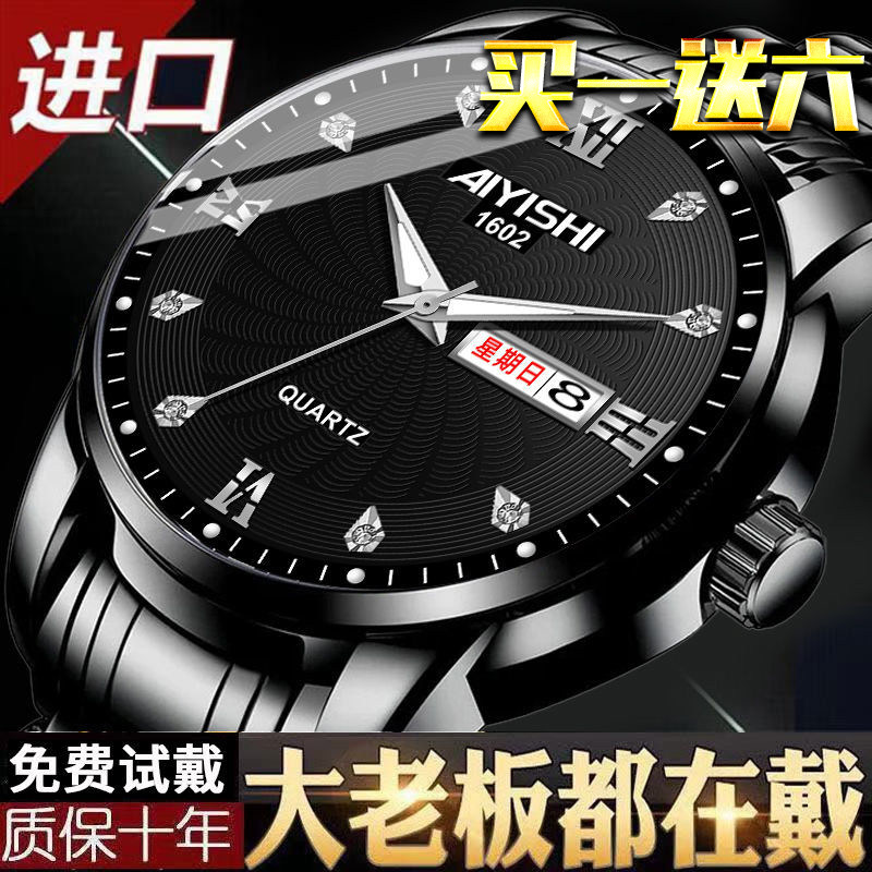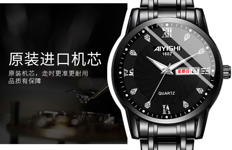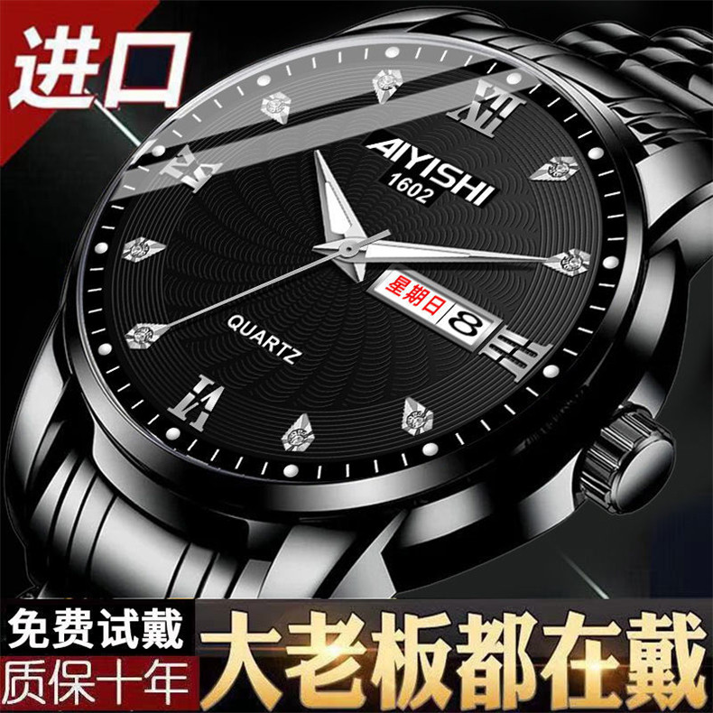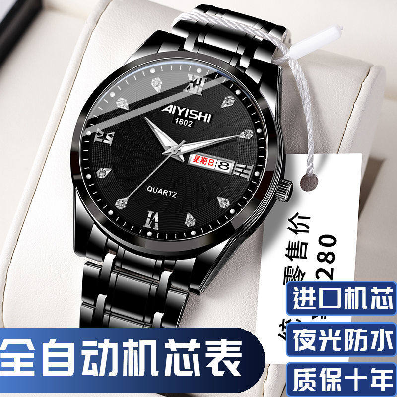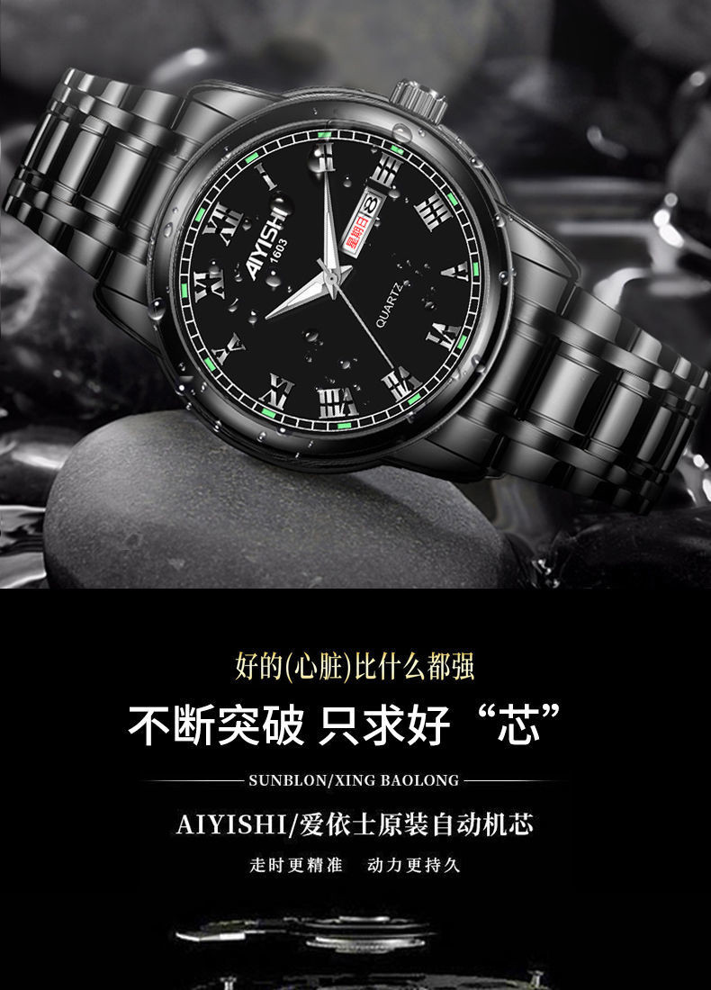 Механические кварцевые водонепроницаемые мужские часы, календарь, трендовый стальной ремешок из нержавеющей стали, Швейцария