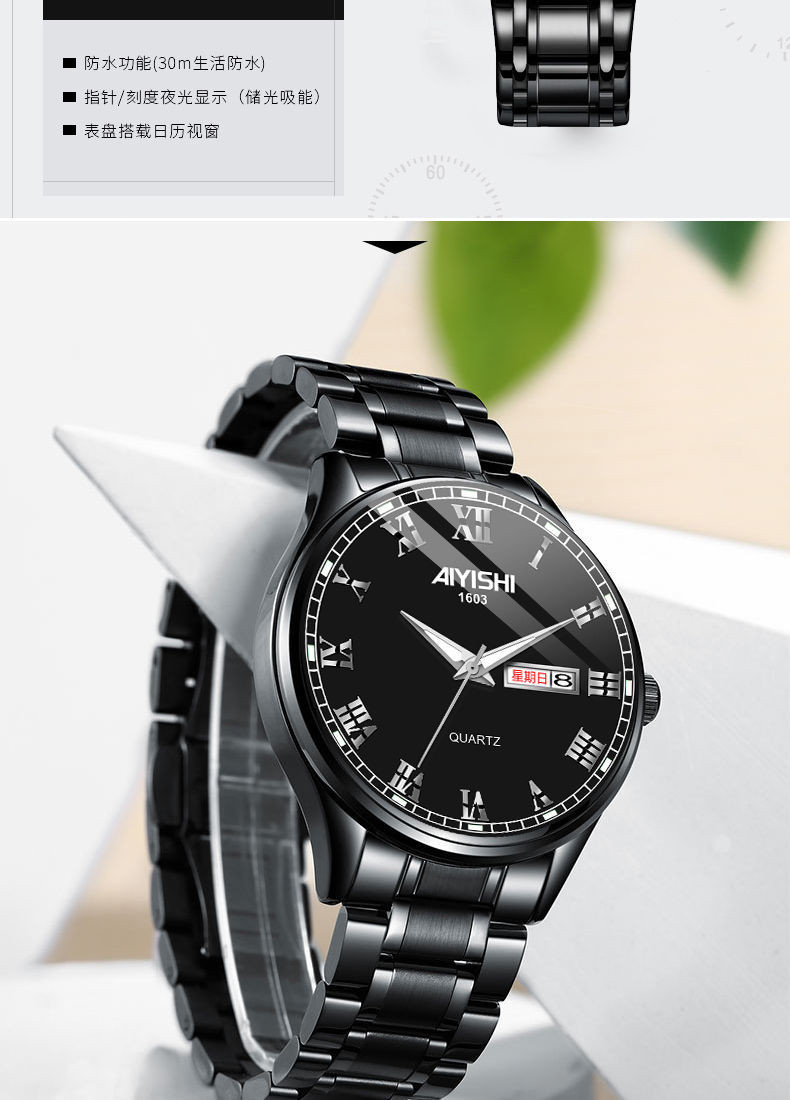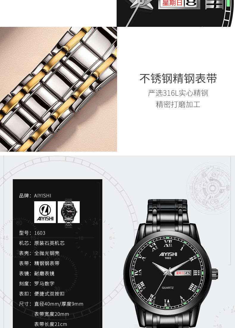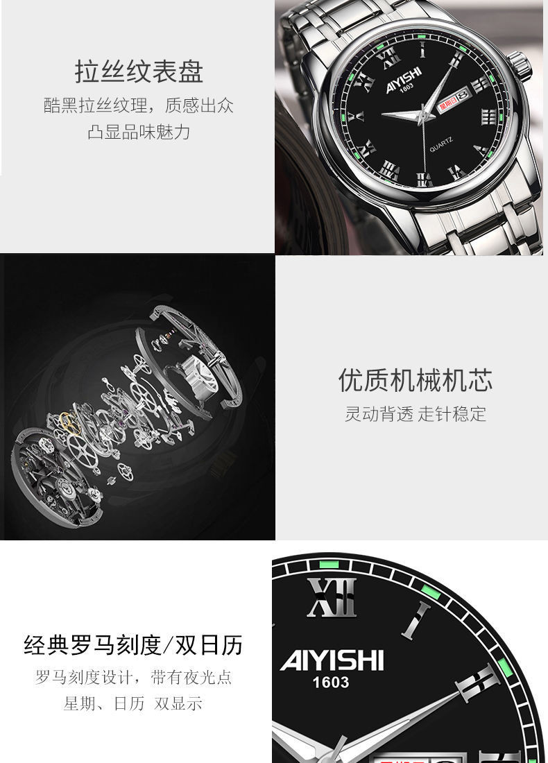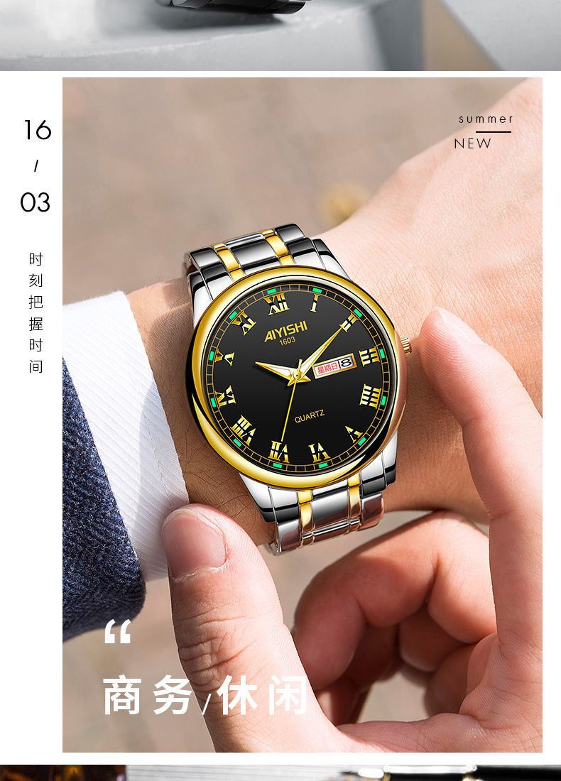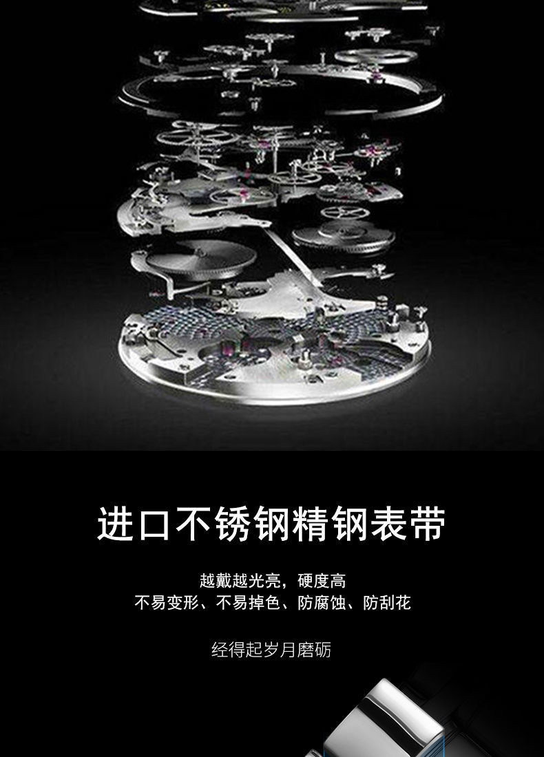 Механические кварцевые водонепроницаемые мужские часы, календарь, трендовый стальной ремешок из нержавеющей стали, Швейцария