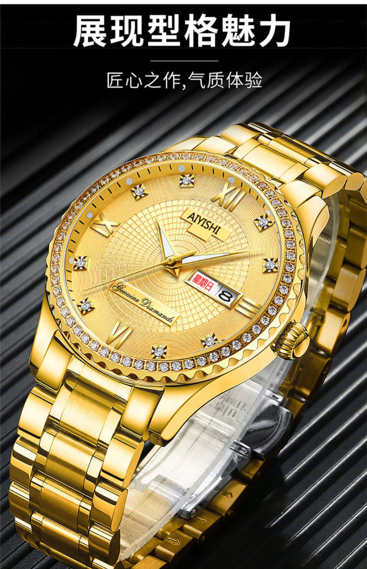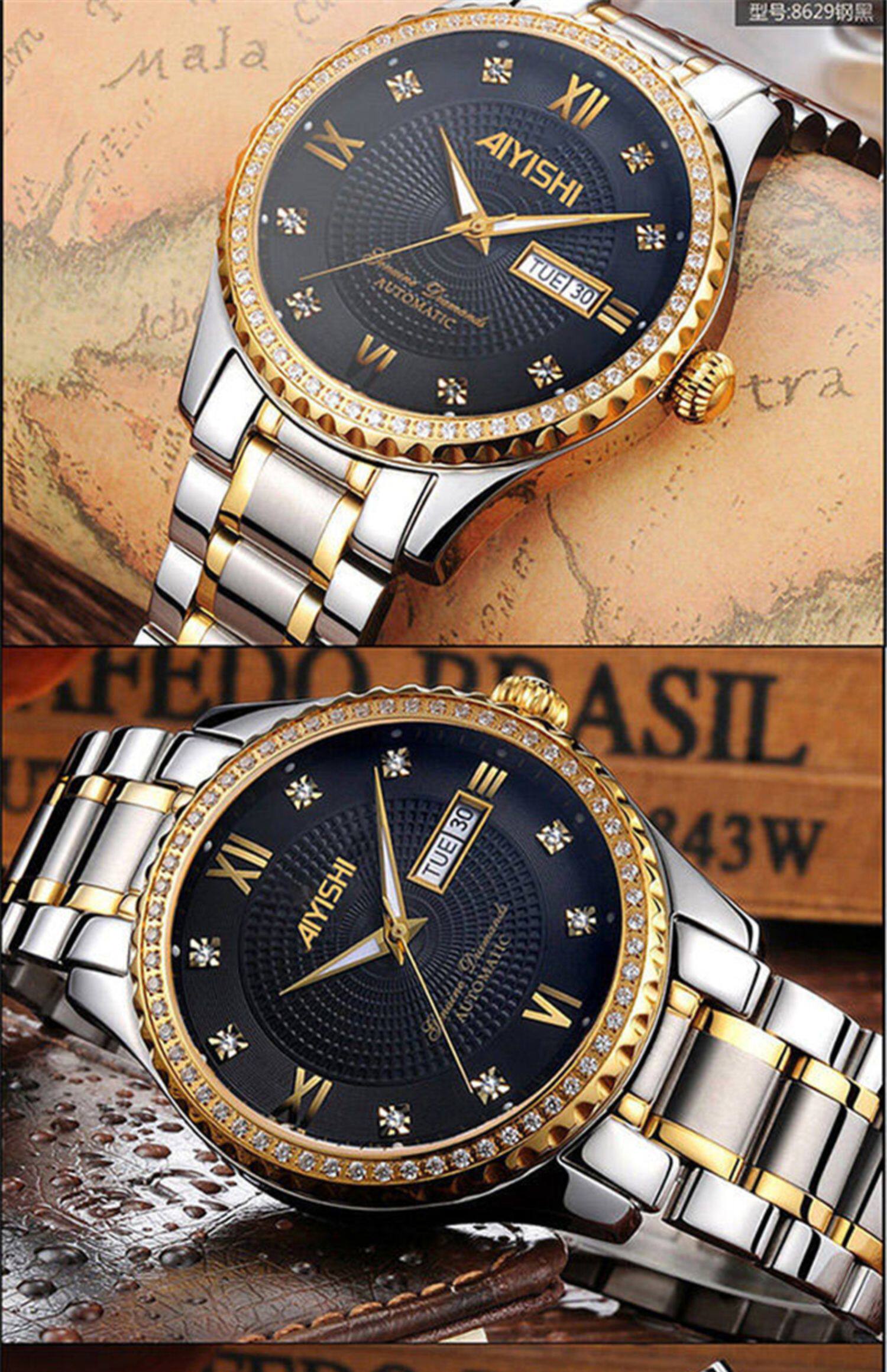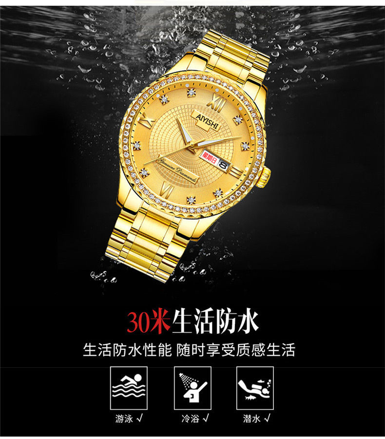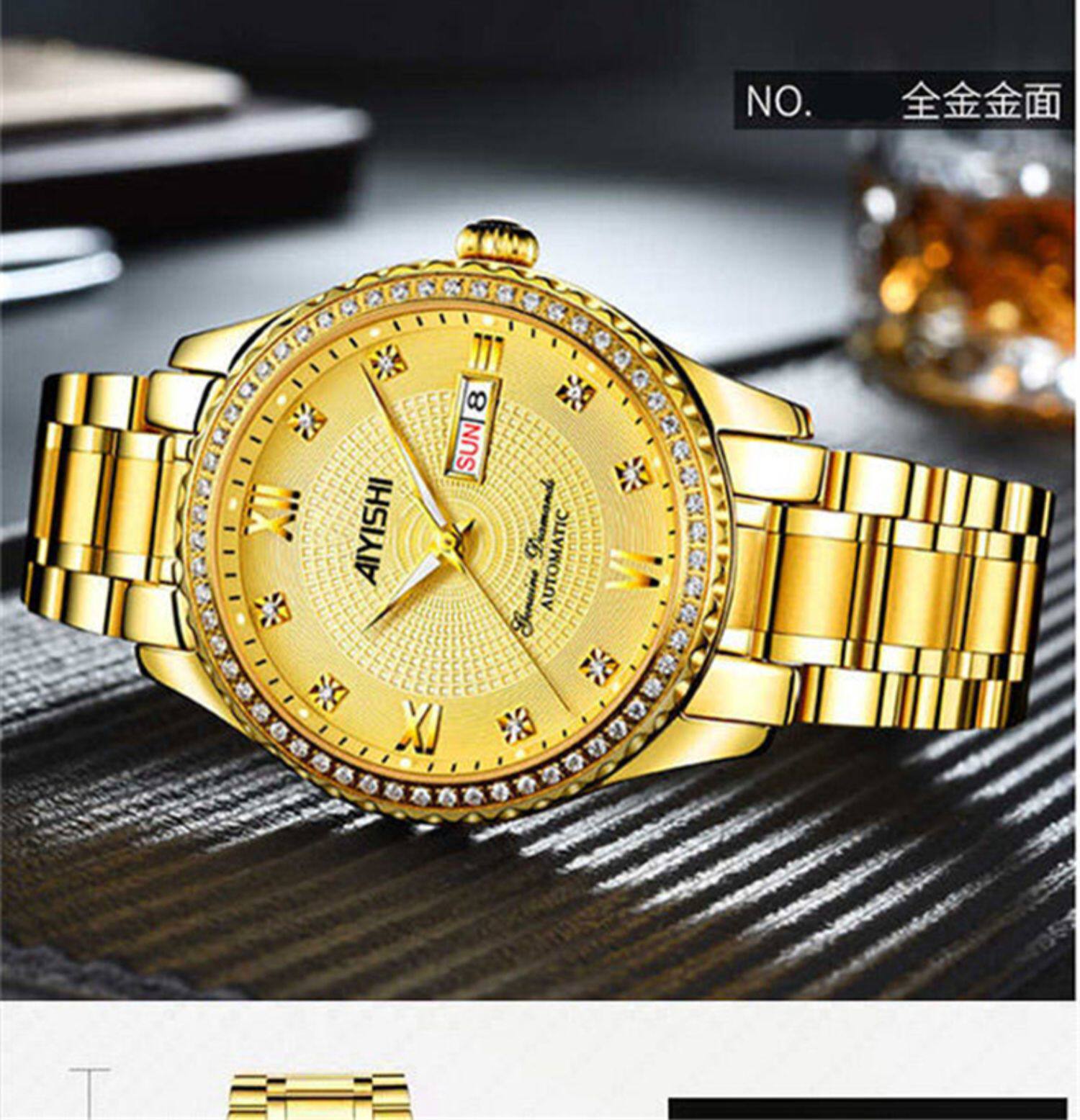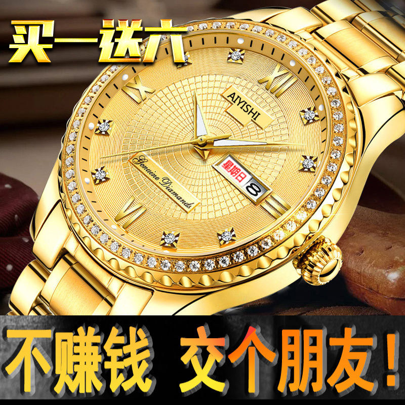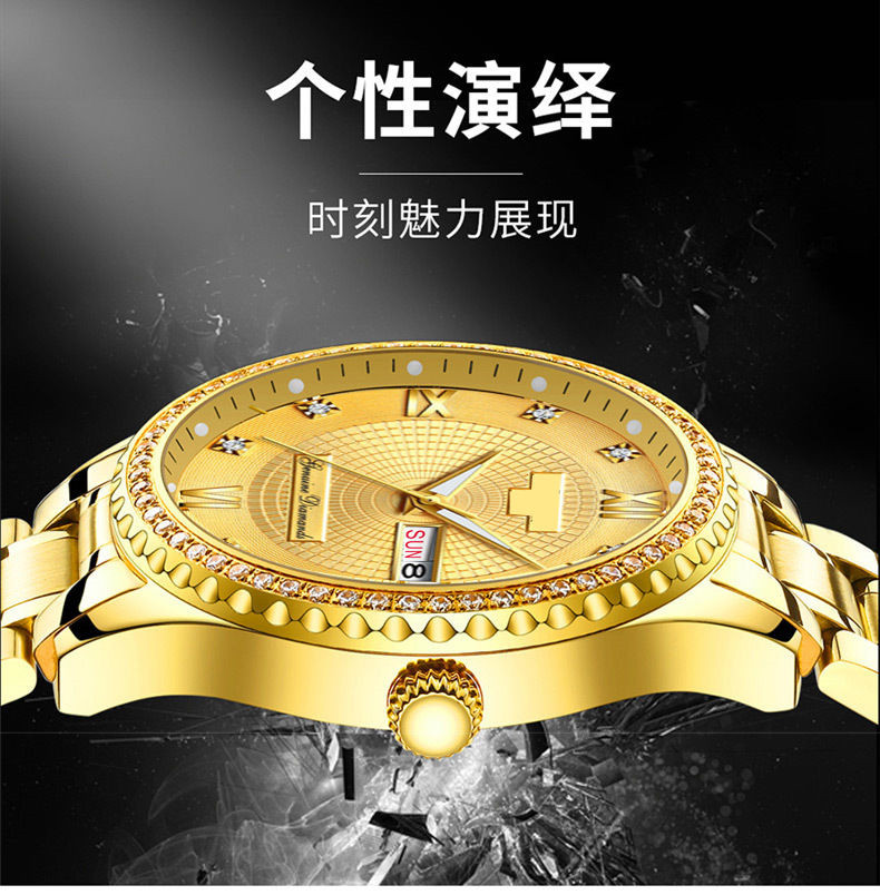 Мужской водонепроницаемый календарь, модные механические кварцевые трендовые золотые часы для влюбленных, Швейцария