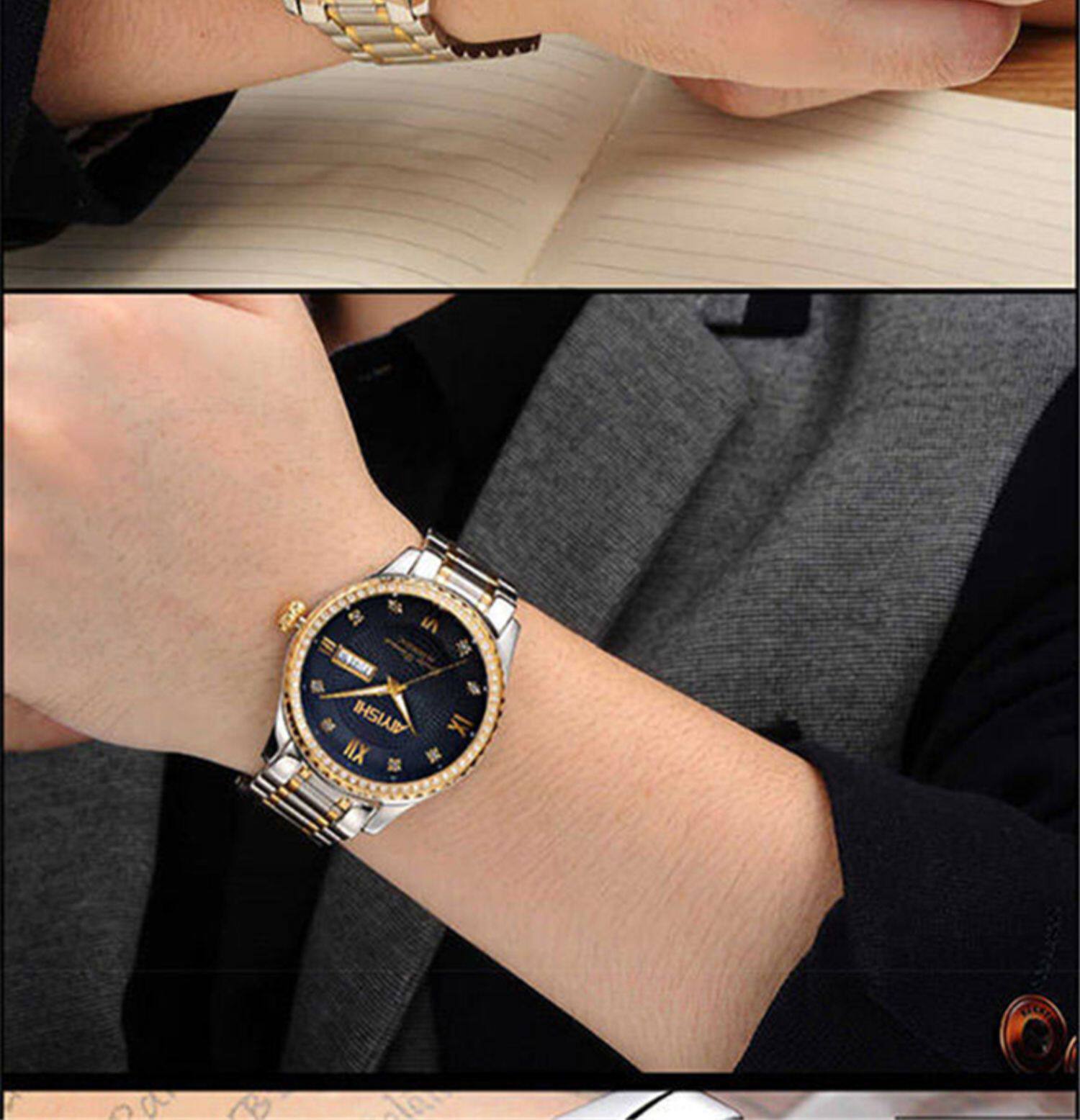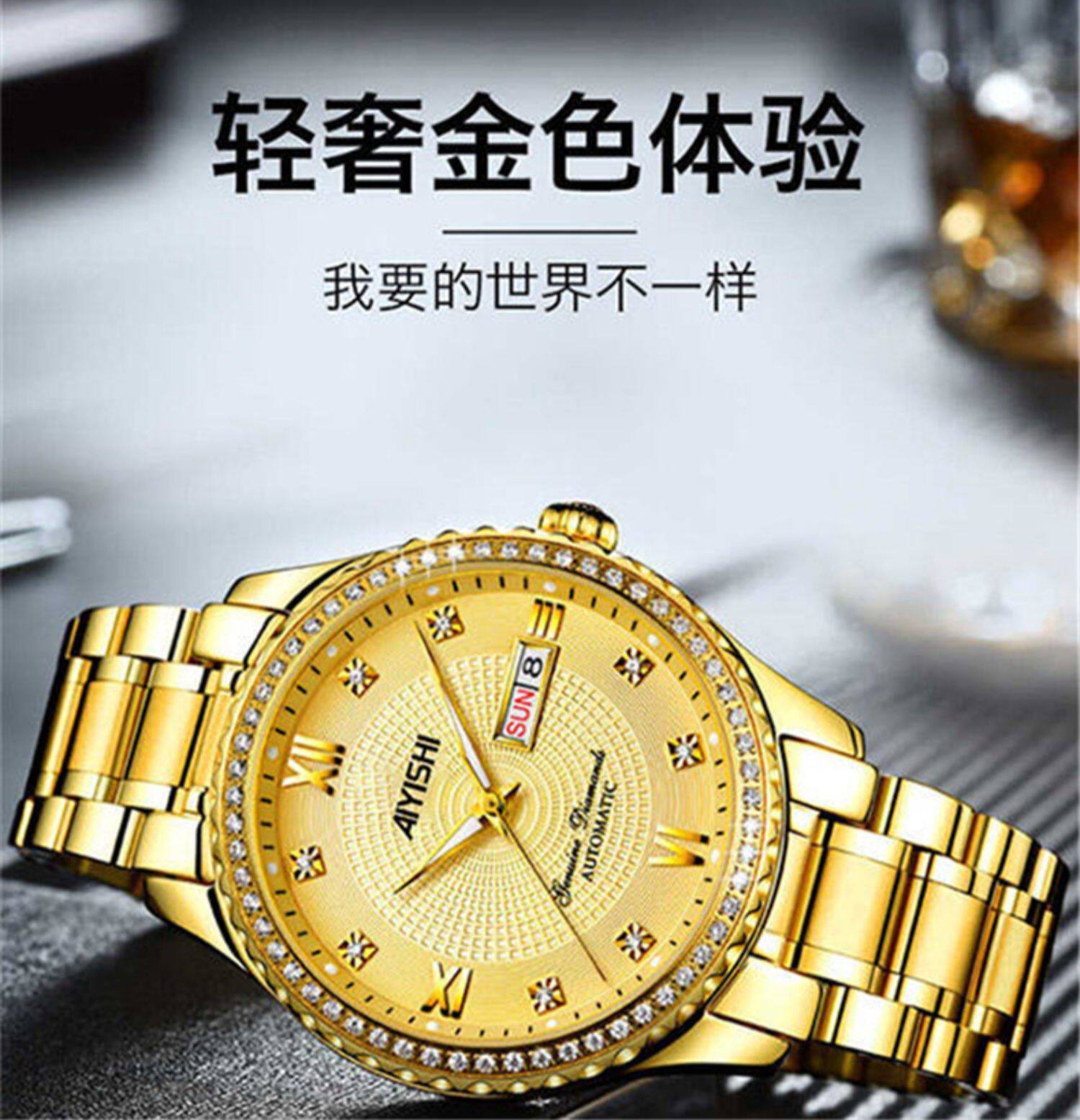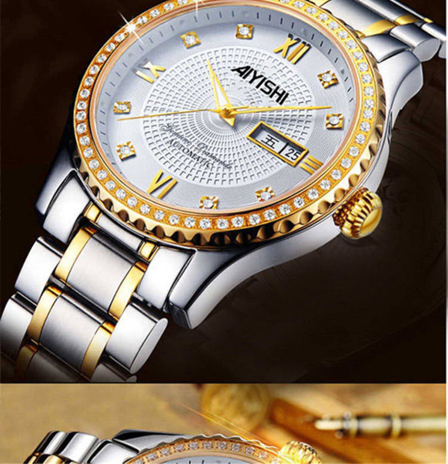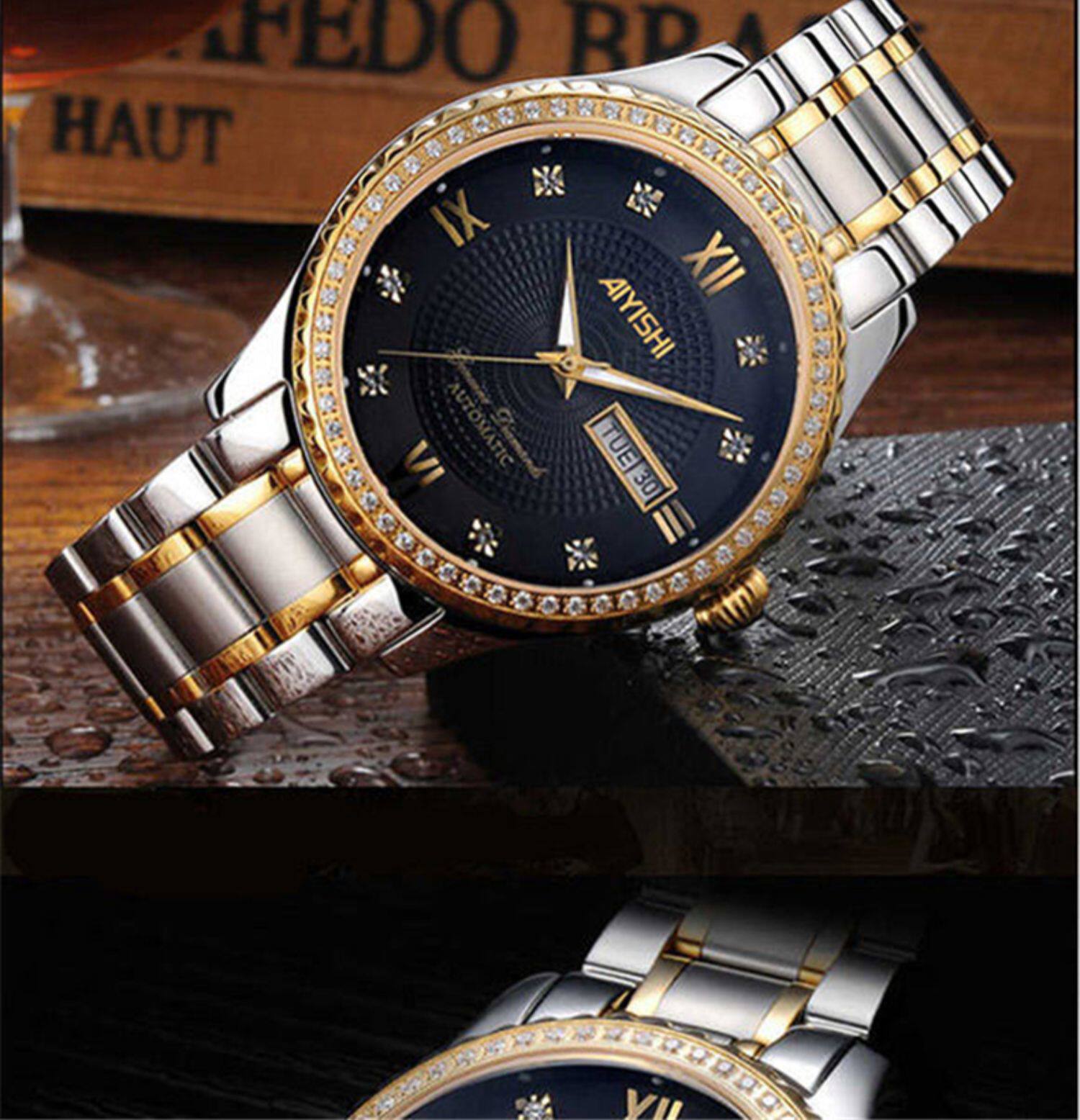 Мужской водонепроницаемый календарь, модные механические кварцевые трендовые золотые часы для влюбленных, Швейцария