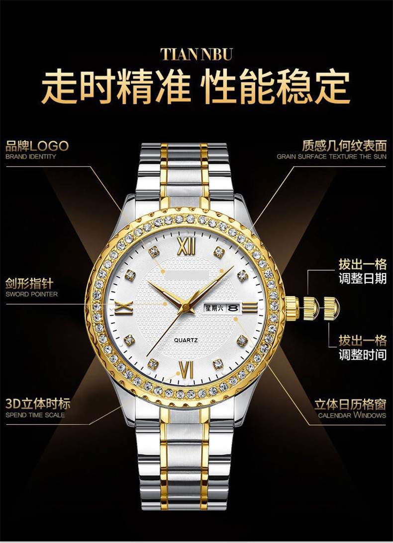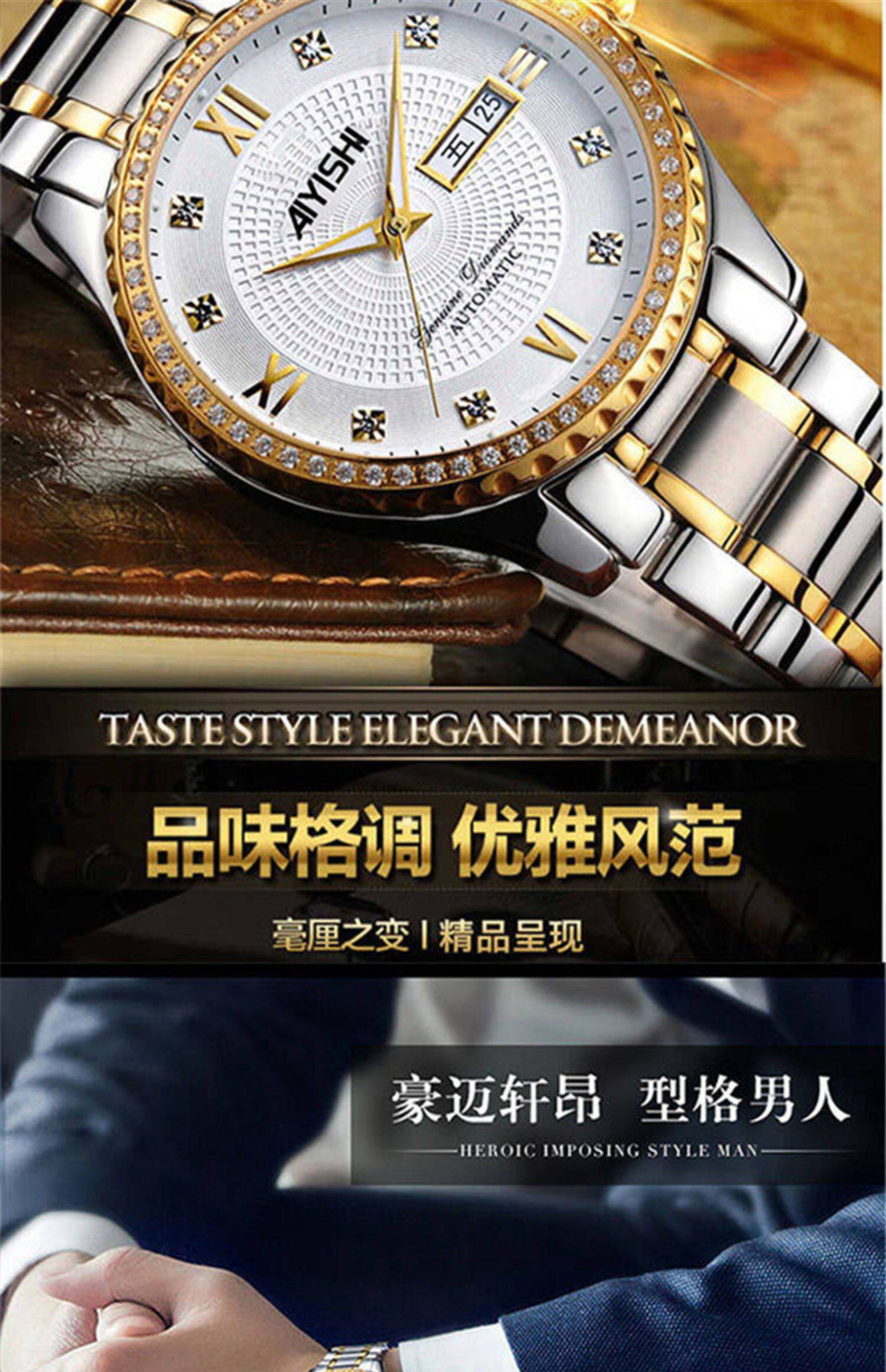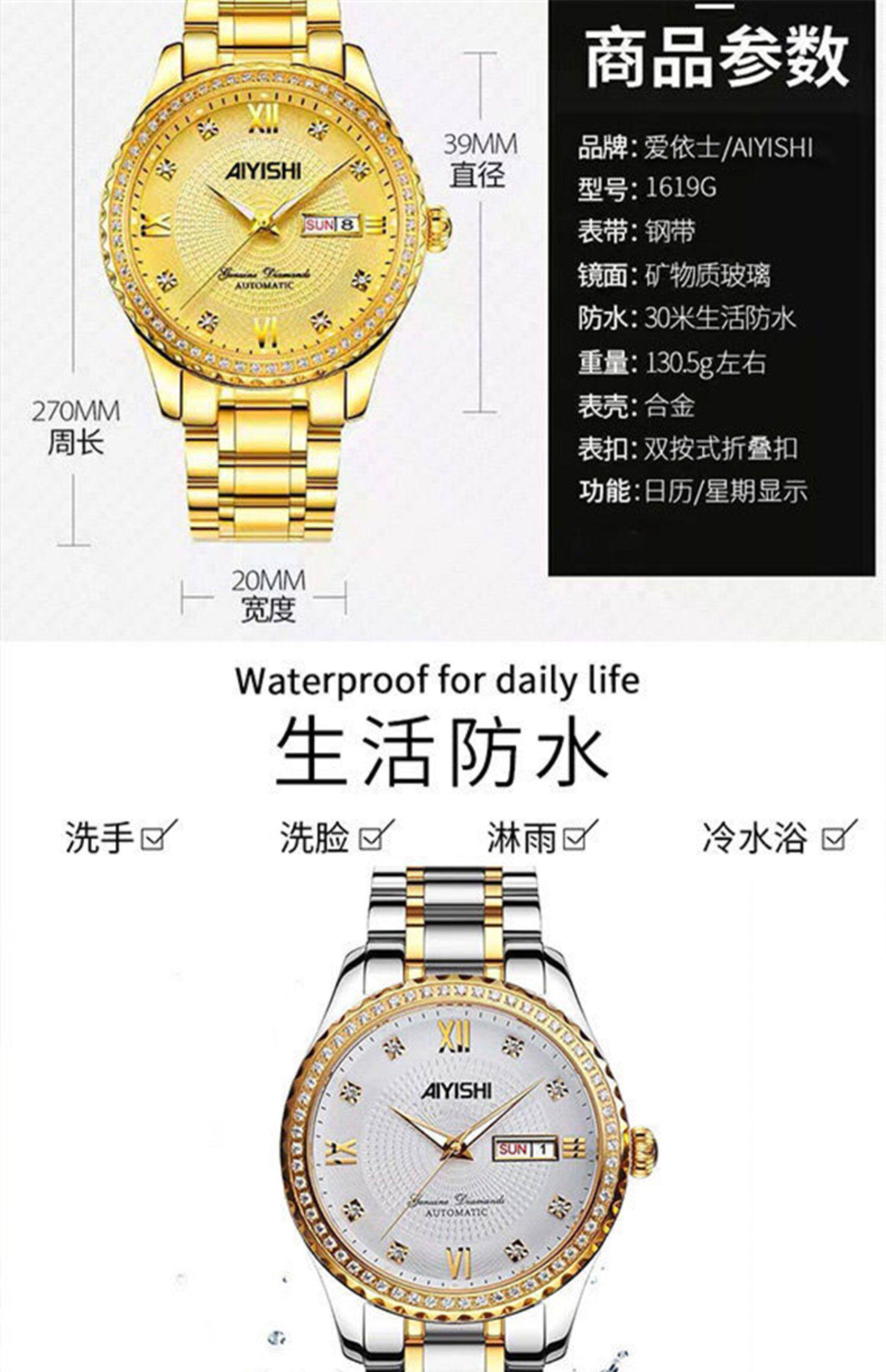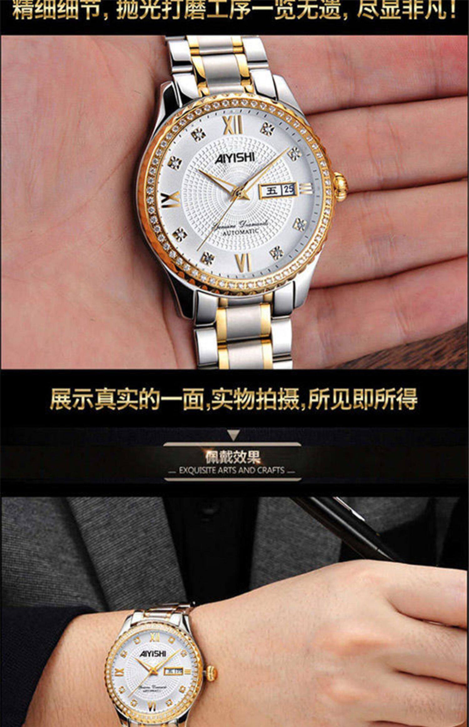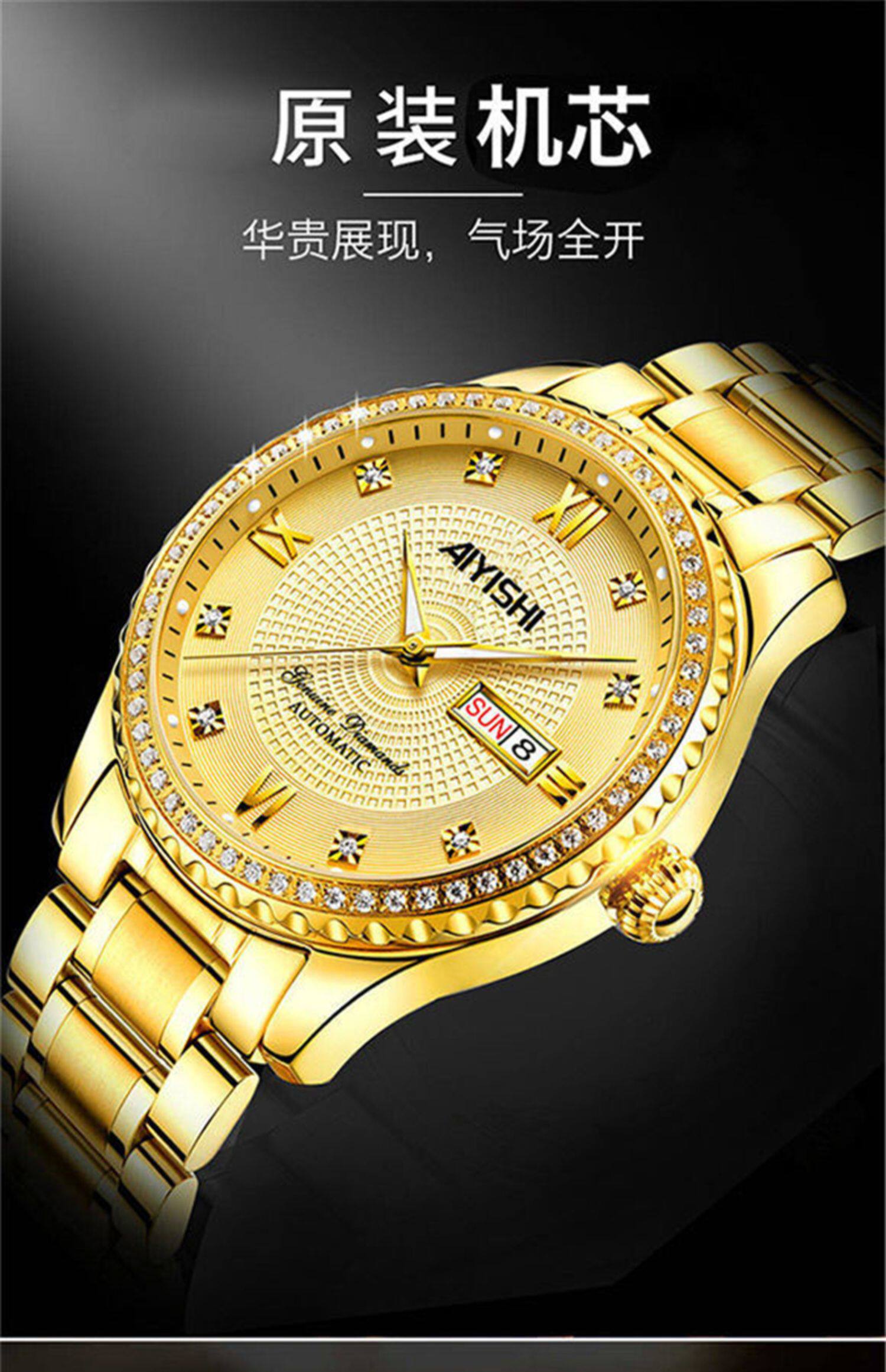 Мужской водонепроницаемый календарь, модные механические кварцевые трендовые золотые часы для влюбленных, Швейцария