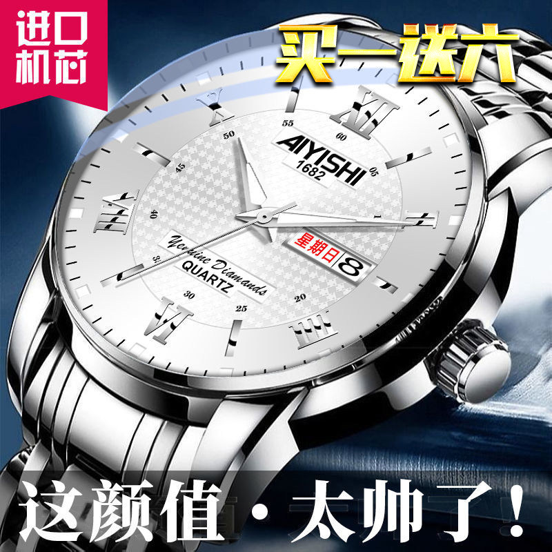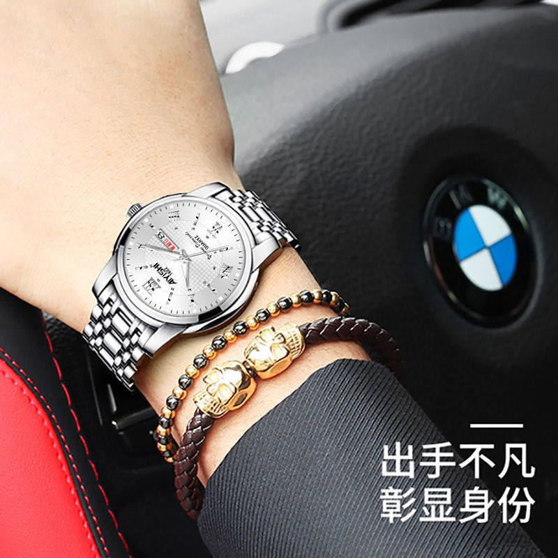 Мужские механические кварцевые часы, водонепроницаемый высококлассный стальной ремешок, календарь, полностью автоматический, Швейцария