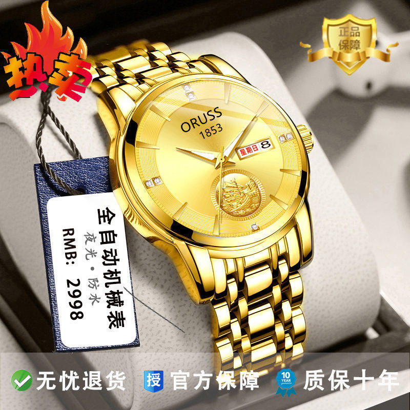 Механические часы, мужской водонепроницаемый календарь, полностью автоматический