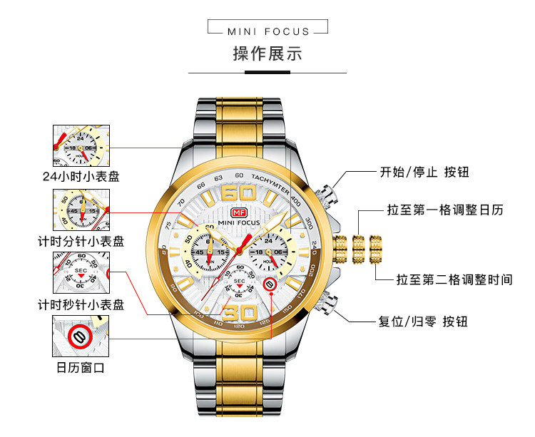 Водонепроницаемые кварцевые часы из нержавеющей стали, календарь, спортивные часы, Швейцария