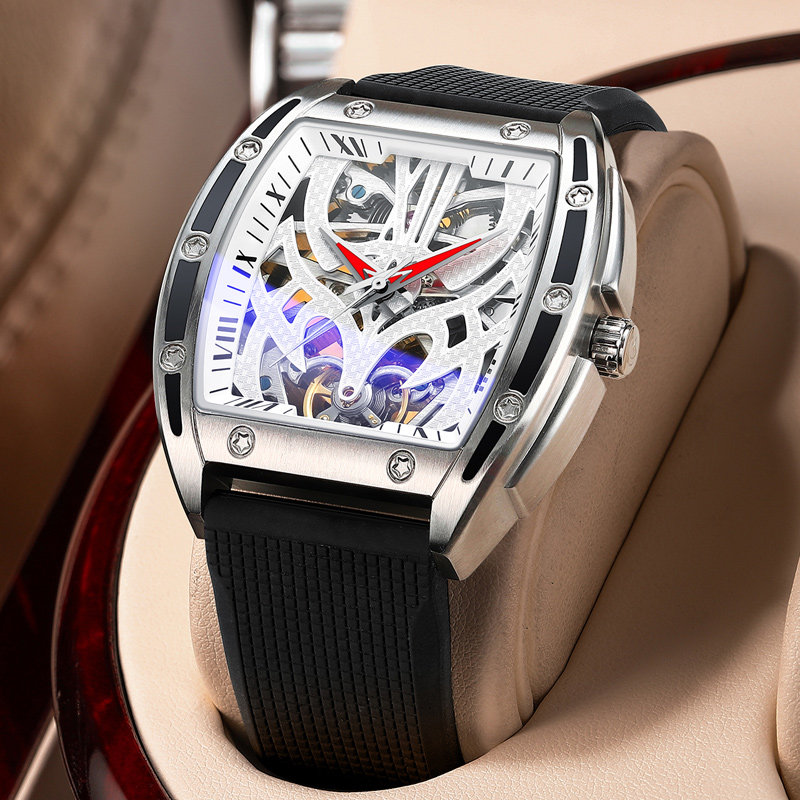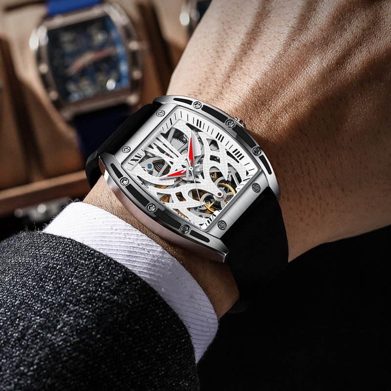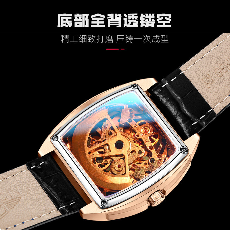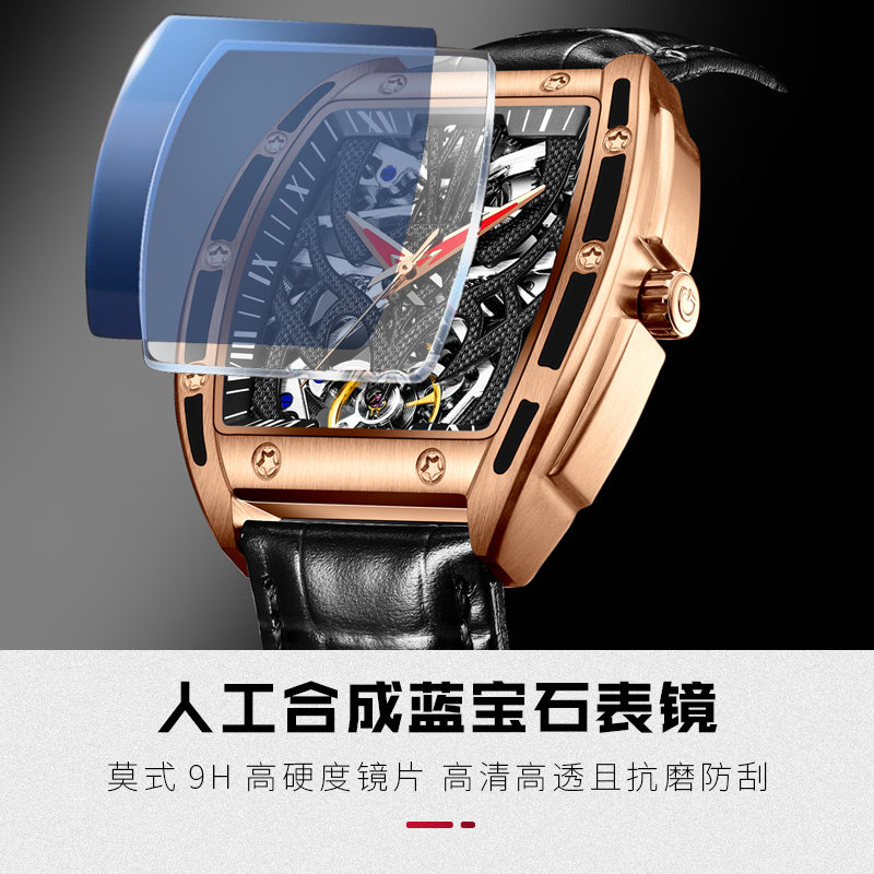Прямоугольные швейцарские часы, механические водонепроницаемые механические часы, мужские часы, Швейцария, полностью автоматический, из натуральной кожи