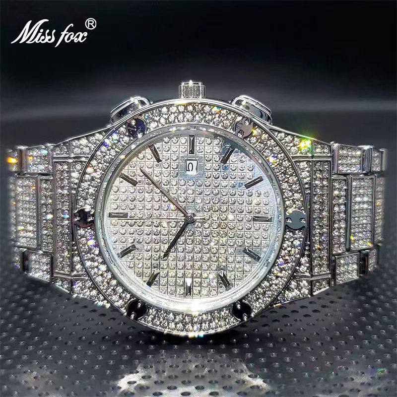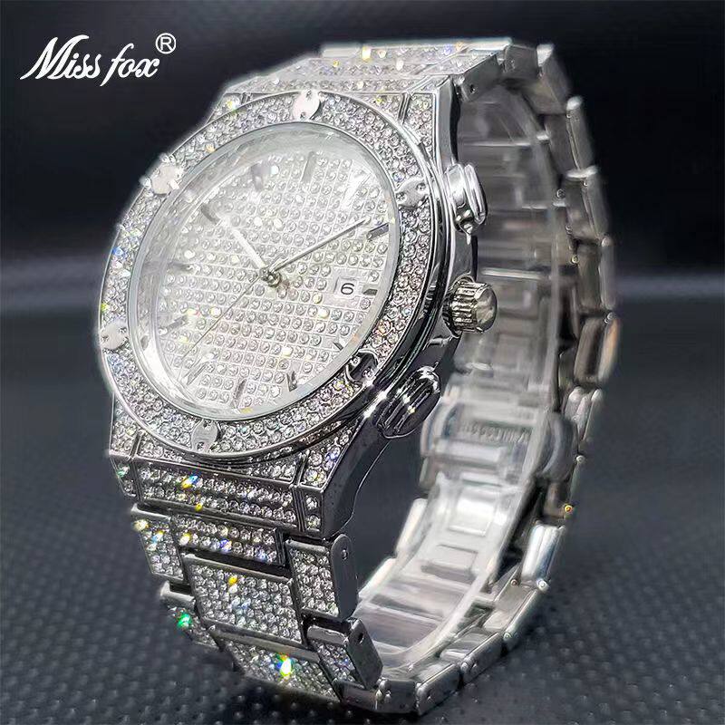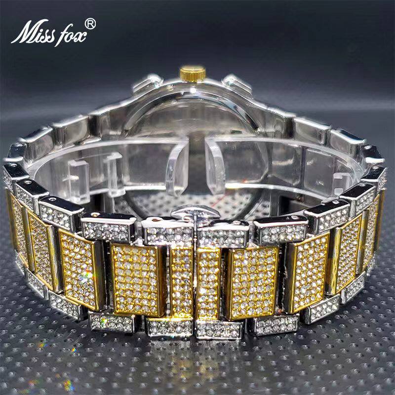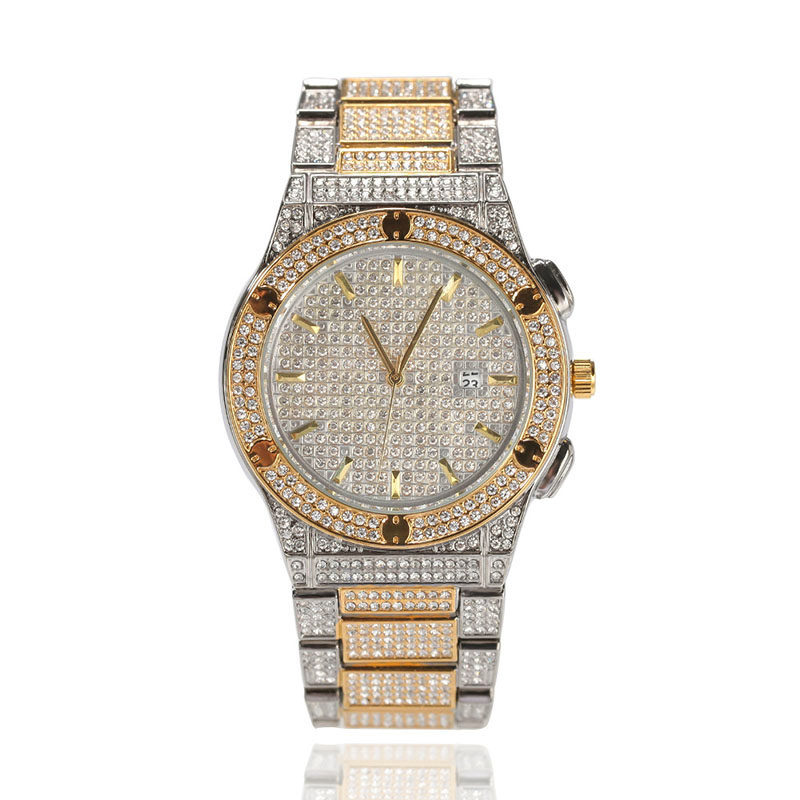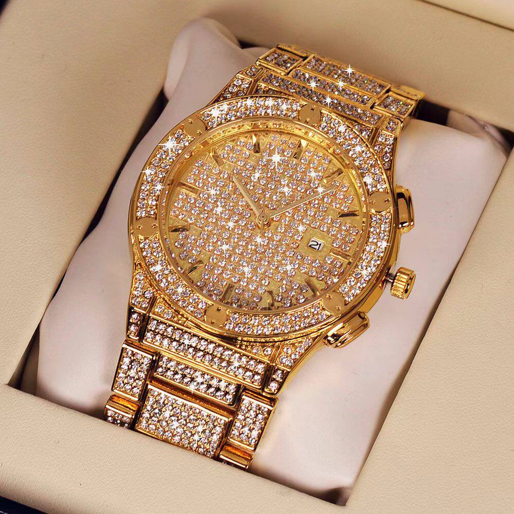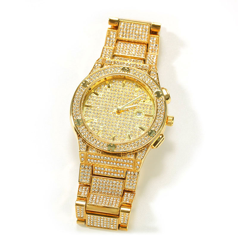 Водонепроницаемый золотой календарь в стиле хип-хоп, японские кварцевые часы, инкрустировано бриллиантами
