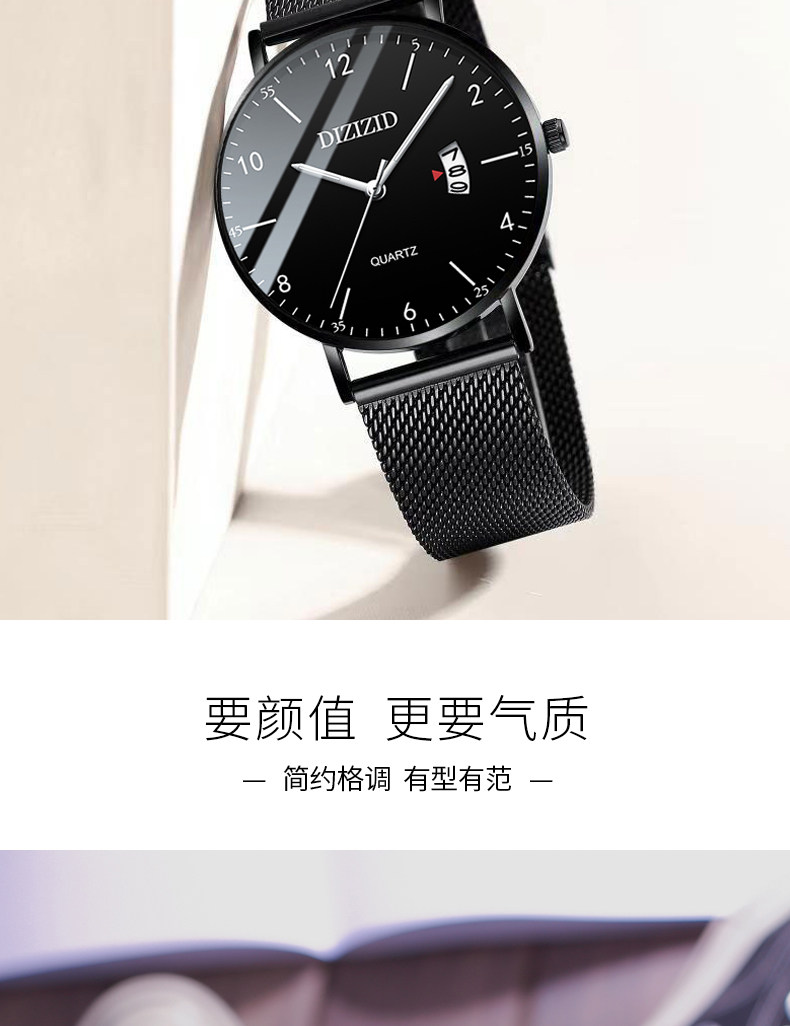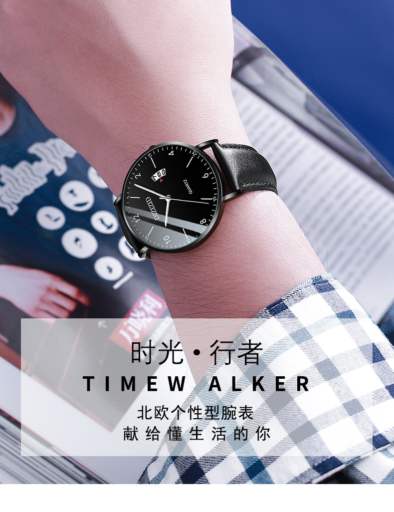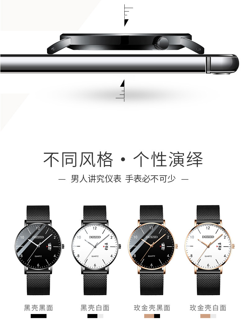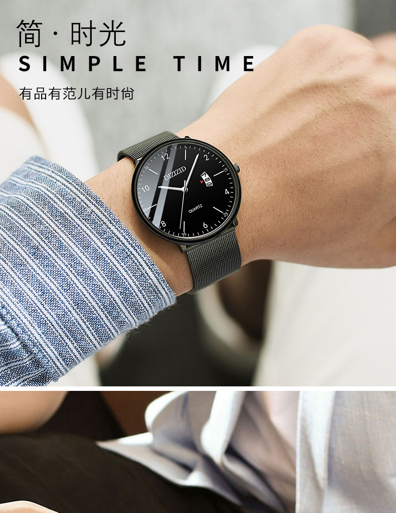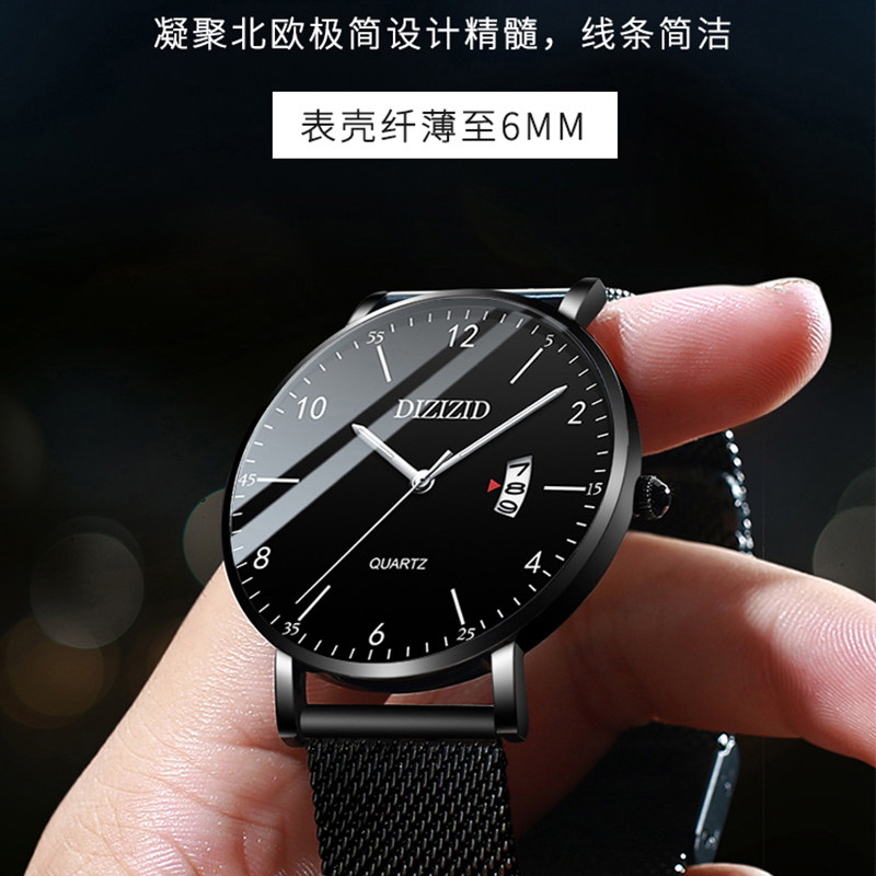 Мужские часы, трендовые механические ультратонкие механические часы, водонепроницаемые кварцевые цифровые часы, подходит для подростков, для средней школы, простой и элегантный дизайн