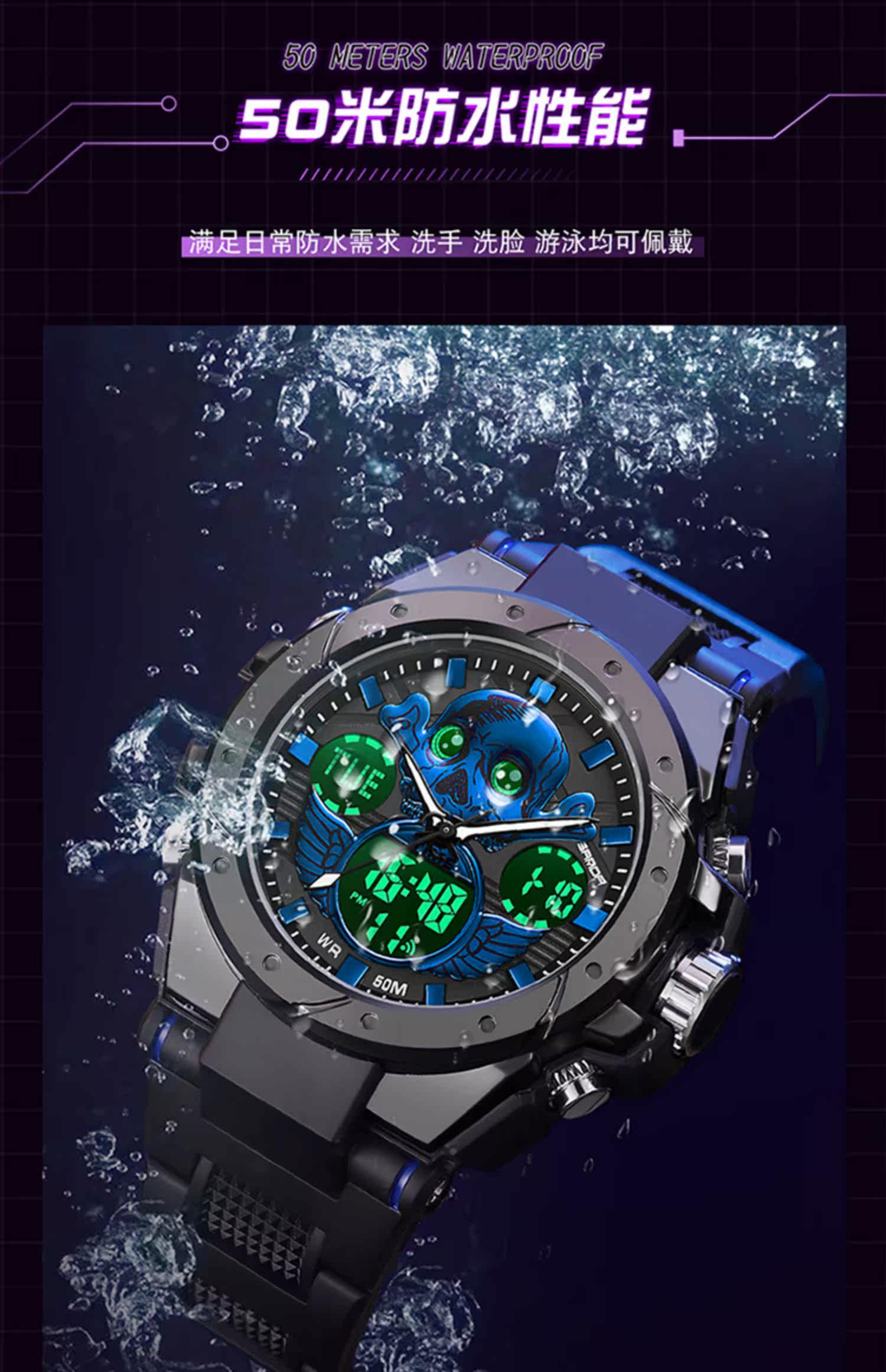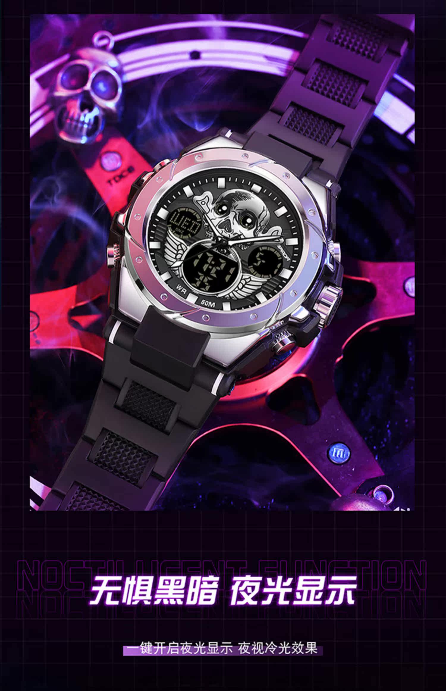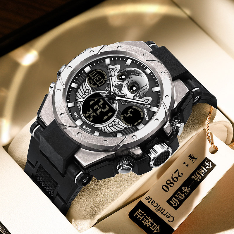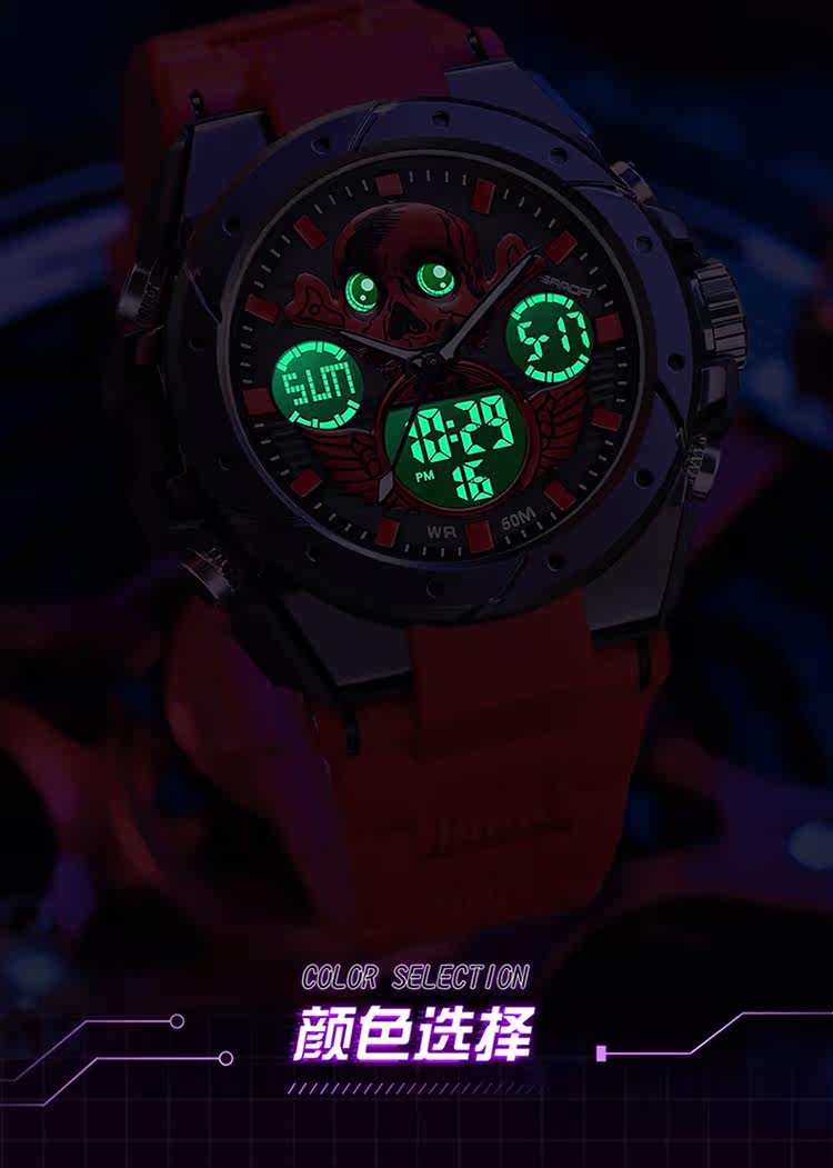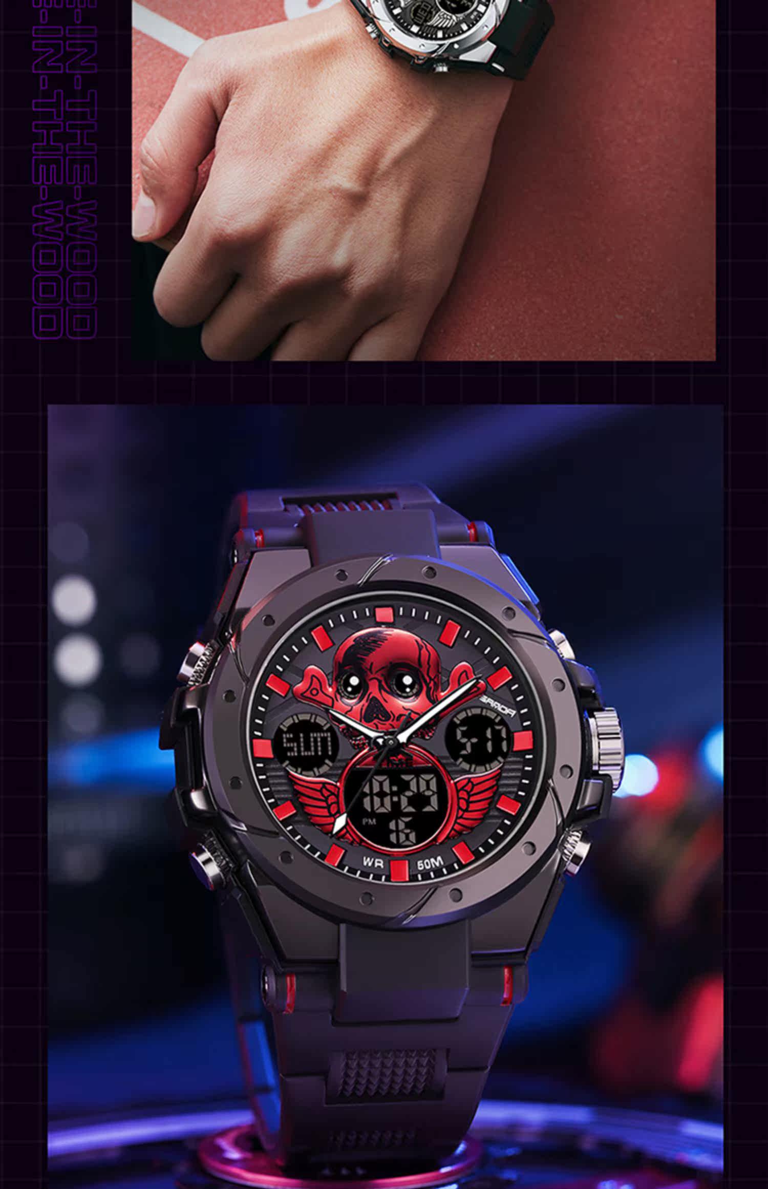- Скелетный циферблат-черный и красный [Плавание+будильник+импорт аккумулятор аккумулятор стабильный]