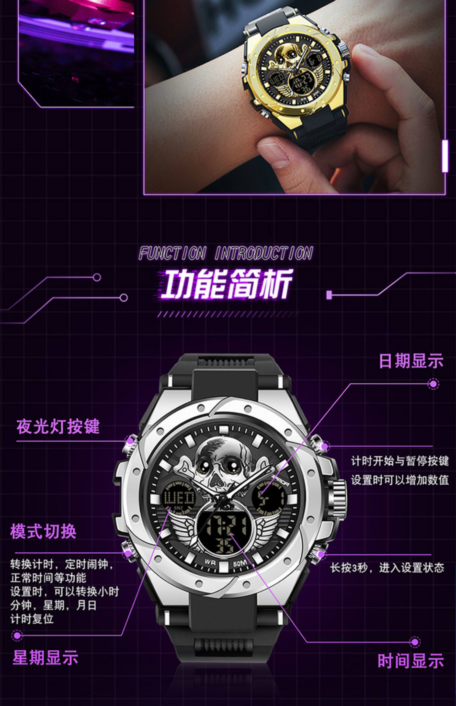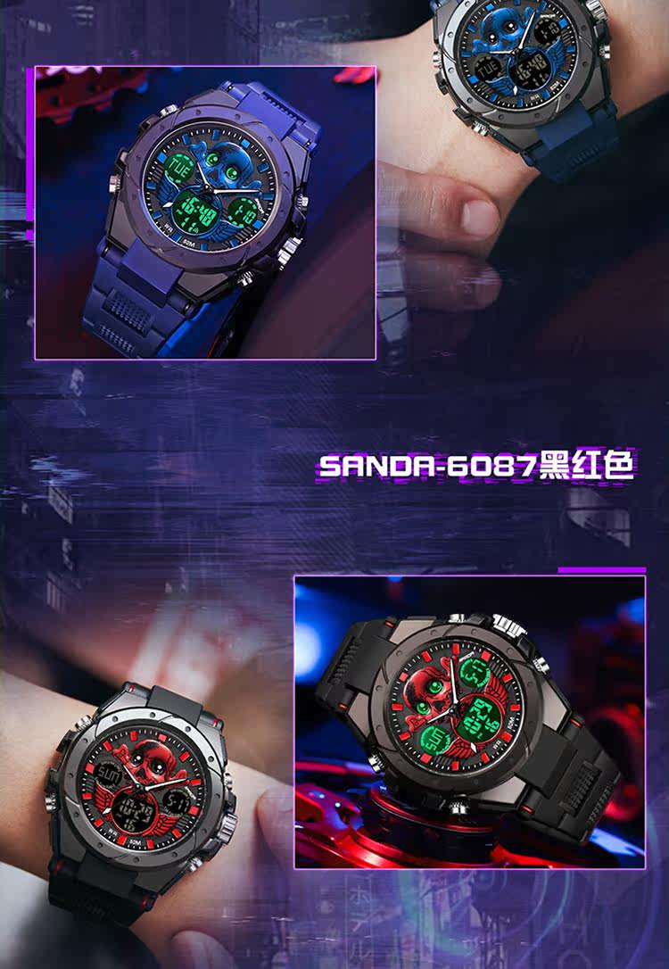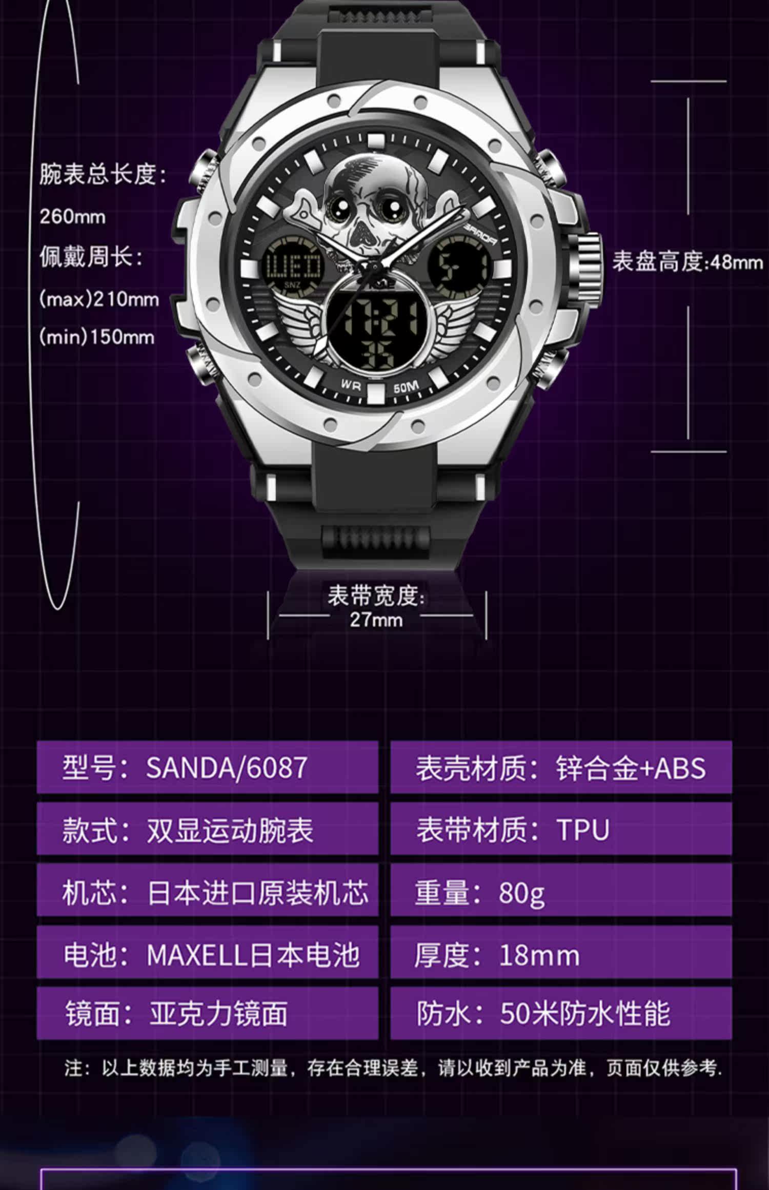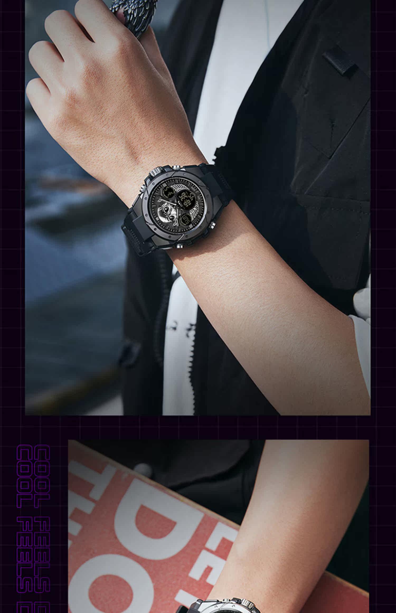 - Скелетный циферблат-черный и красный [Плавание+будильник+импорт аккумулятор аккумулятор стабильный]