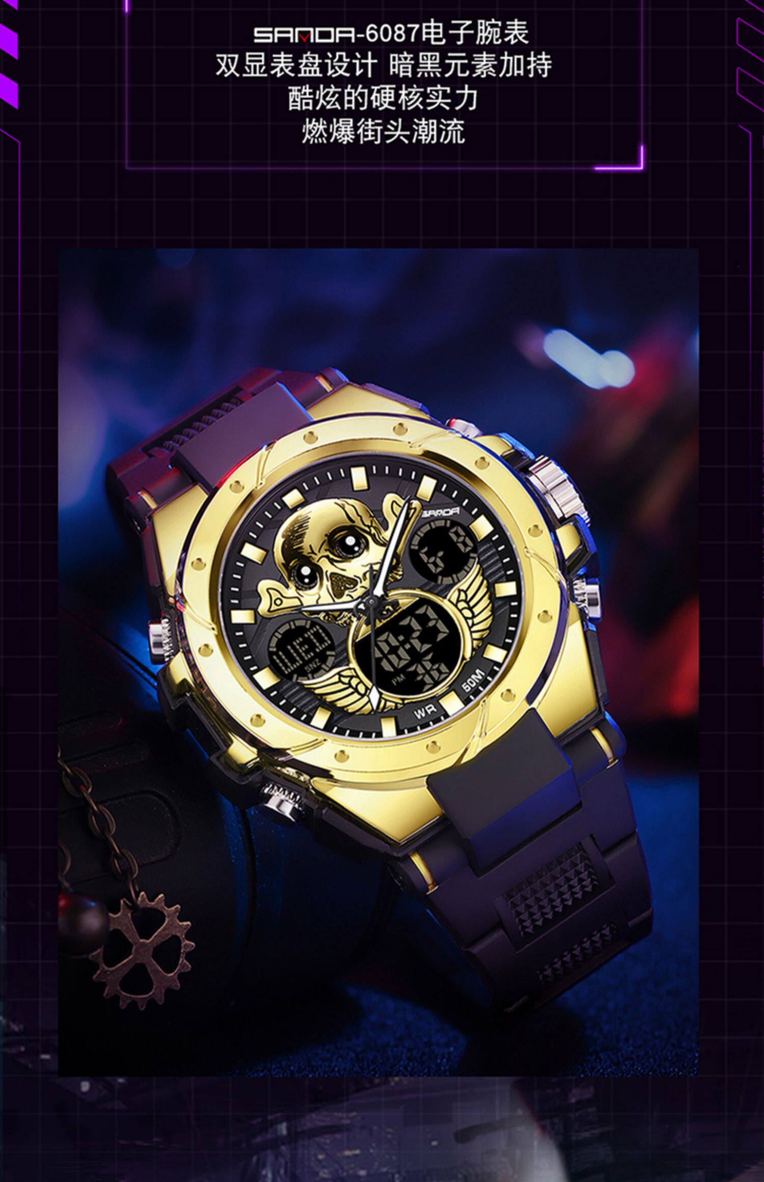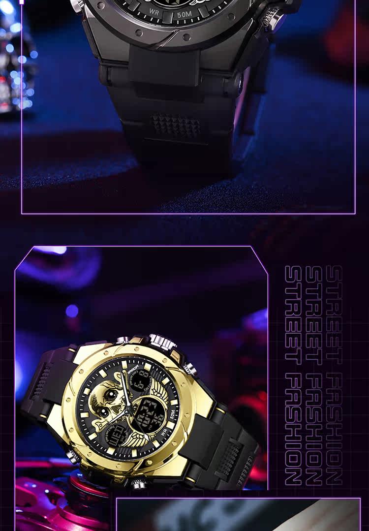 - Скелетонный циферблат-черный золото [Положение плавания+будильник+импорт Движение стабильно]