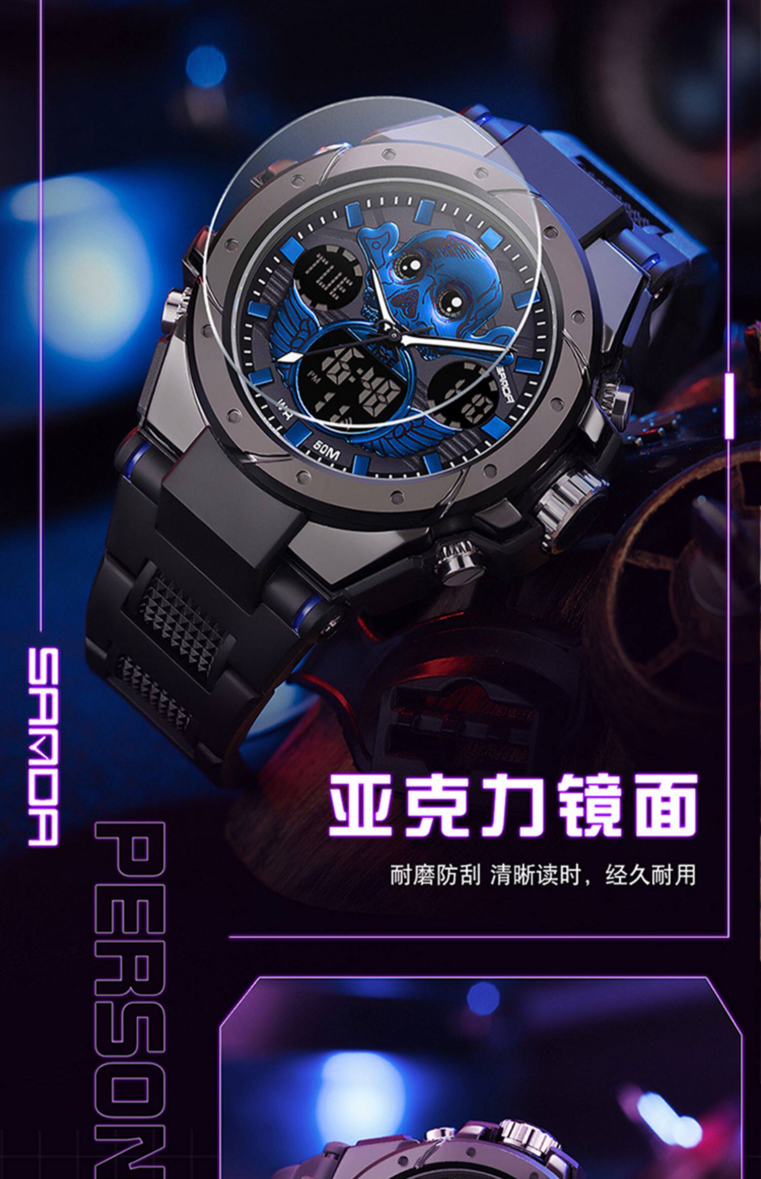 - Скелетный циферблат-черный и синий [выполняет плавание+будильник+импортная стабилизация аккумулятора]